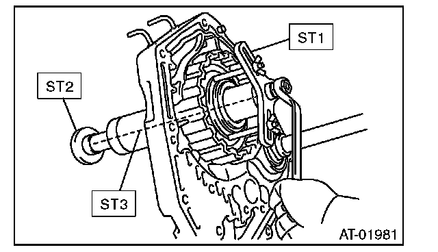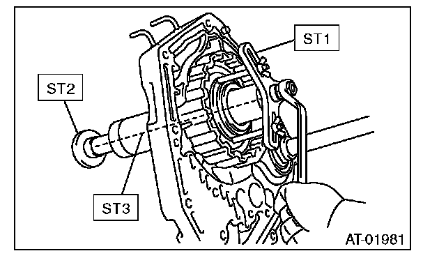 3) Using the ST1, ST2 and ST3, remove the snap ring.