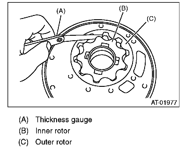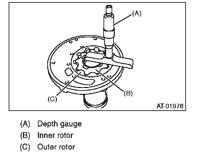 Set a depth gauge to oil pump housing, then measure the oil pump housing-to-rotor clearance.