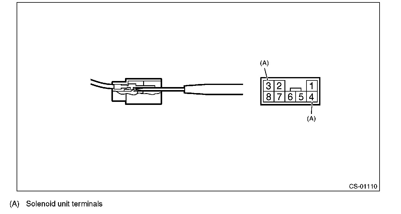 5) Using a flat tip screwdriver with a thin tip, remove the solenoid unit terminals from the harness connector.