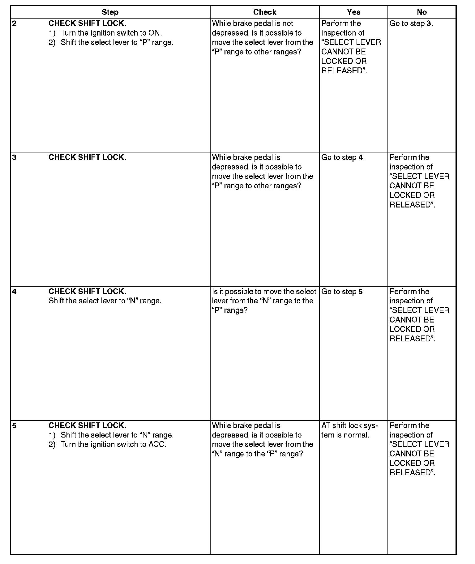 SHIFT LOCK OPERATION