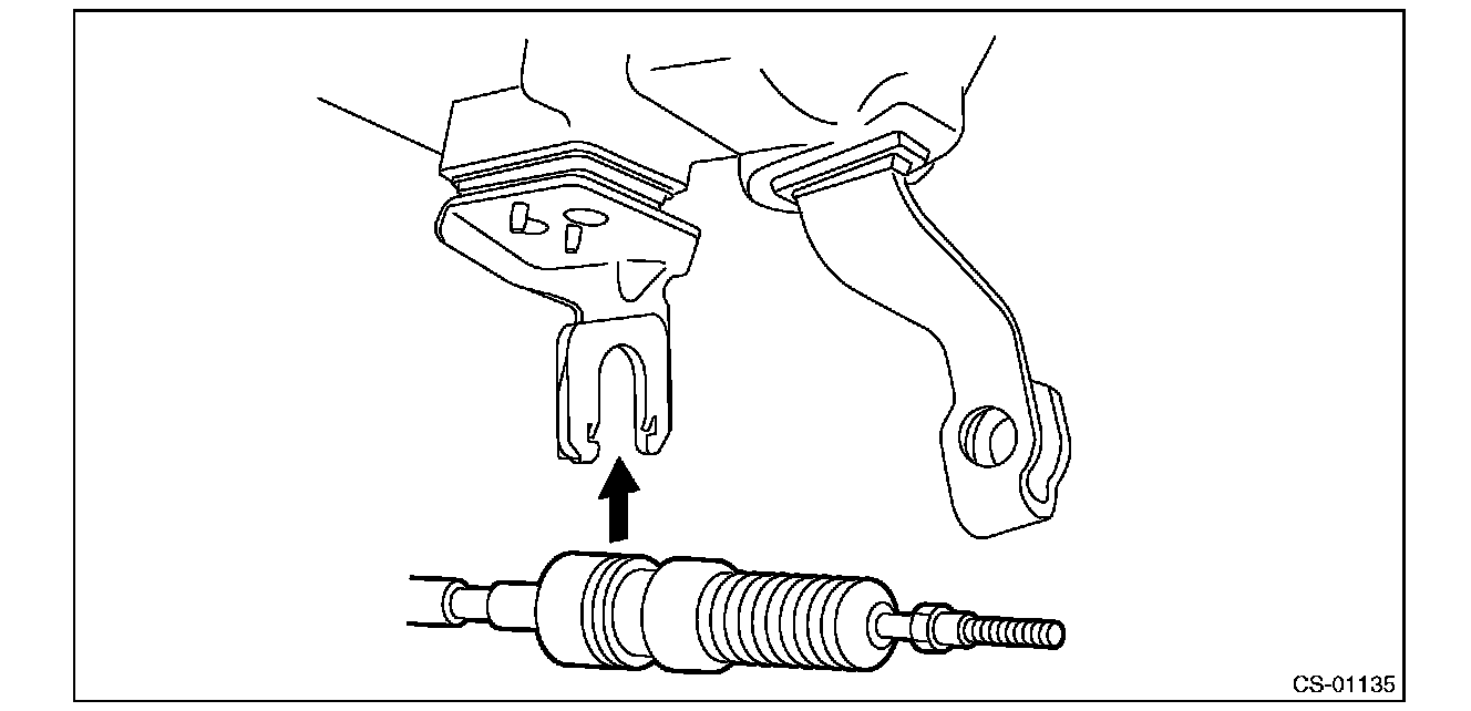 6) Insert the tip of inner cable into connector hole of select lever, and fix the cable to bracket.
