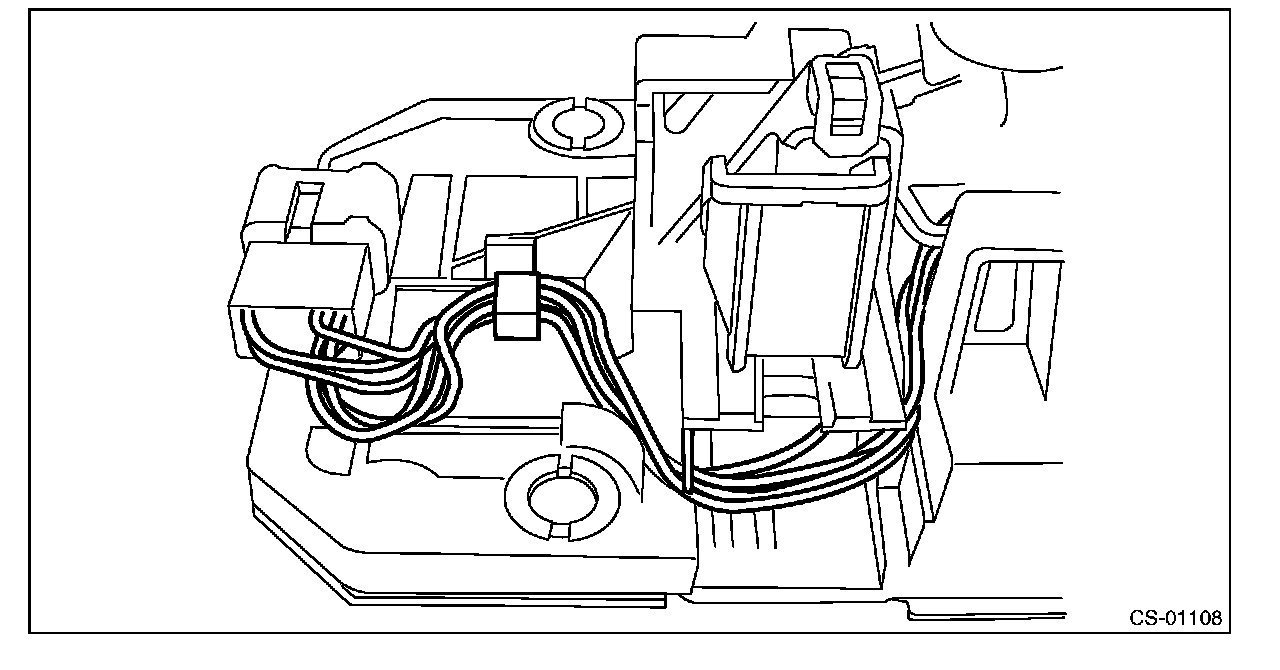 3) Insert a flat tip screwdriver with a thin tip under the connector and disconnect the harness connector from the plate COMPL.