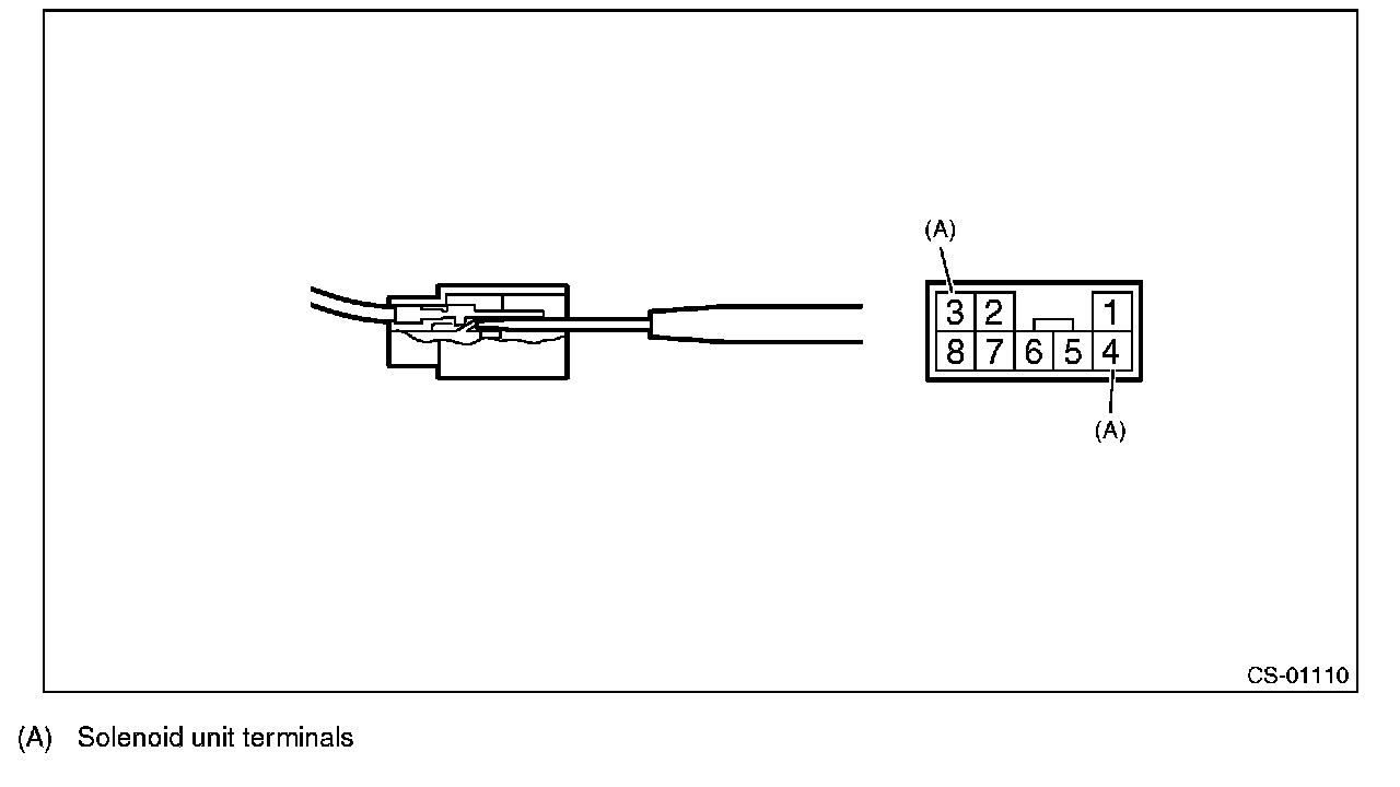 6) Using a flat tip screwdriver with a thin tip, remove the solenoid unit terminals from the connector.
