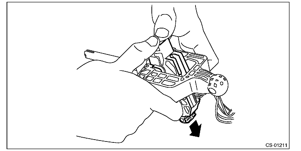 5) Raise the claw with a flat tip screwdriver with a thin tip and remove the solenoid unit.