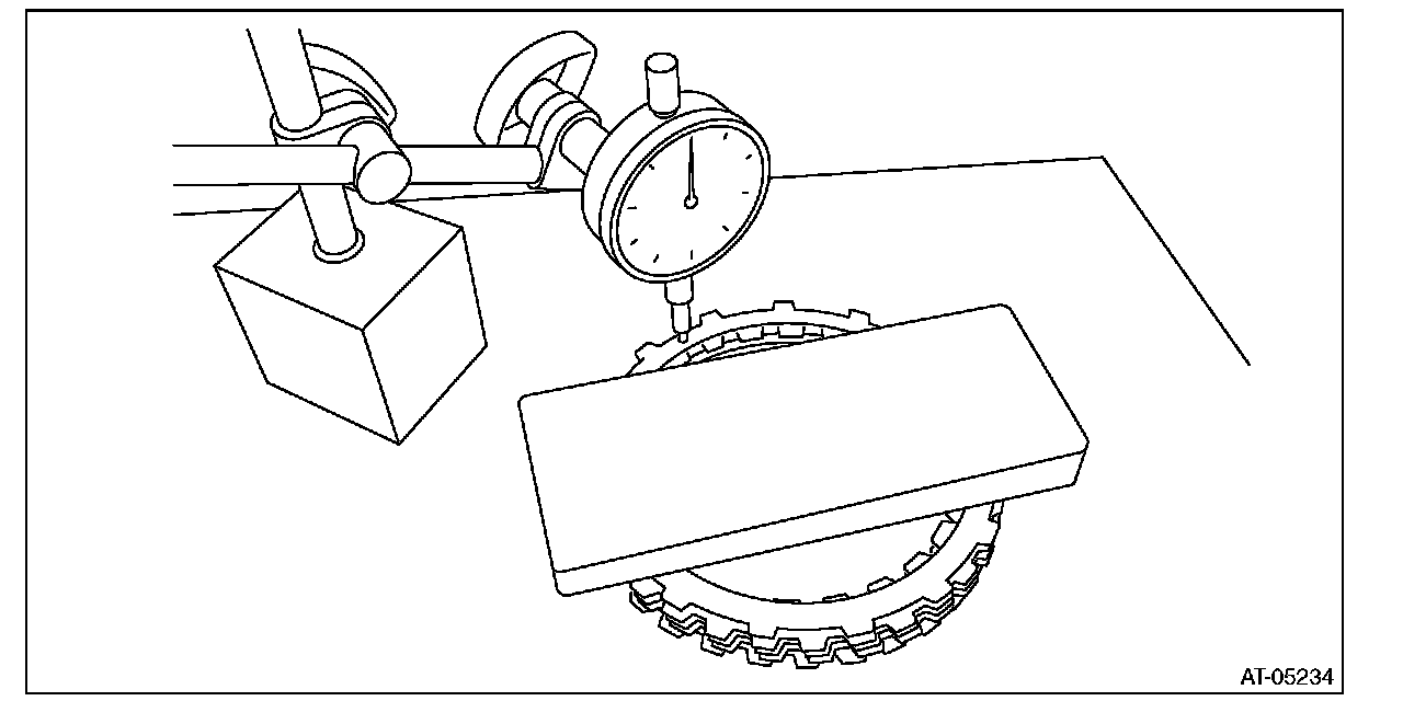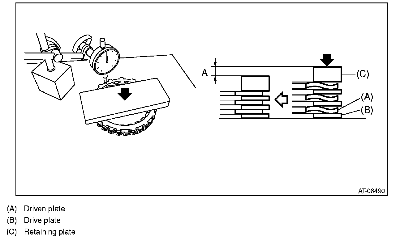 ^ Make sure the clearance between retaining plate and internal gear of forward clutch is within the limit. If it exceeds the standard, replace the forward clutch.
