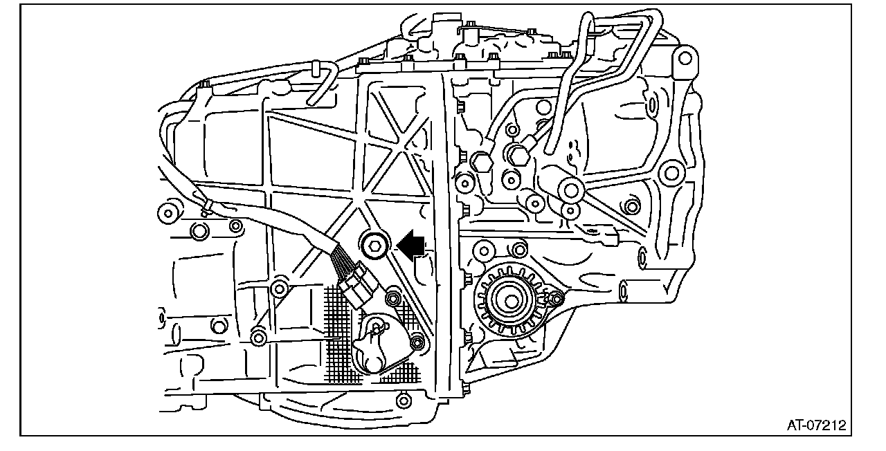 6) When completely overhauling the transmission, refill approx. 10 L (2.6 US qt, 8.8 Imp qt) of CVTF through the transmission right side plug, and install the plug. Finally, install the transmission case cover.