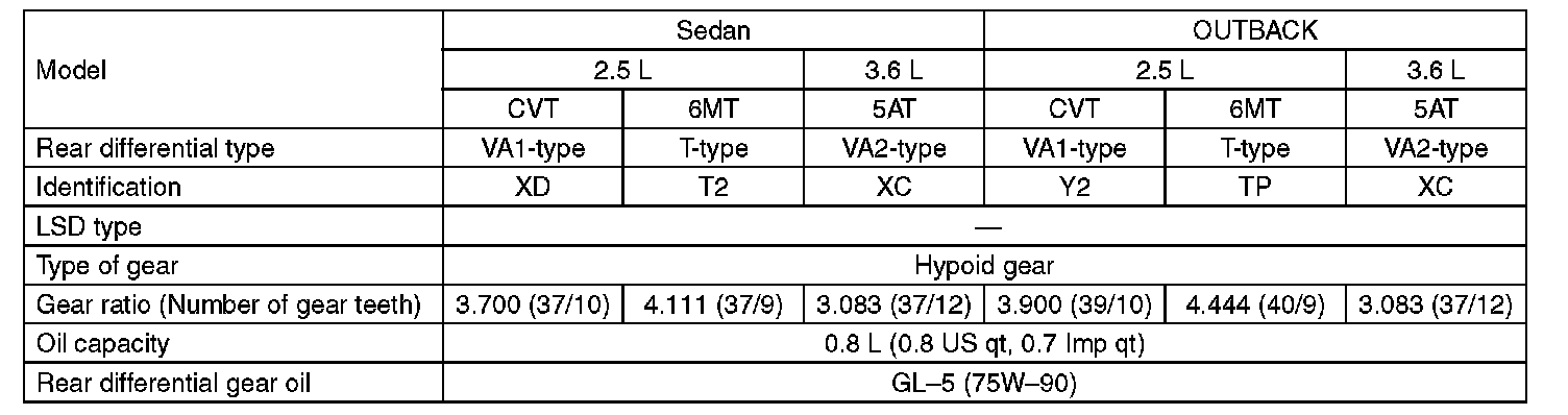 REAR DIFFERENTIALWhen replacing a rear differential assembly, select the correct one according to the following table.