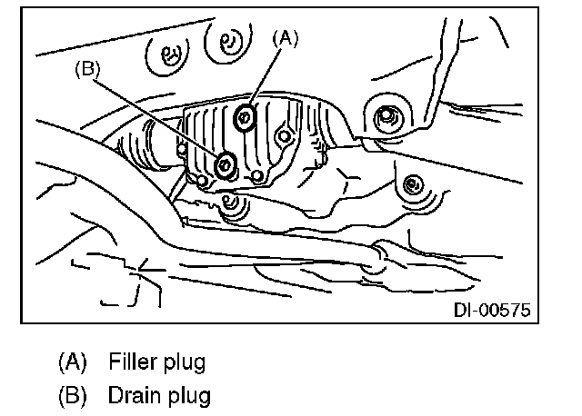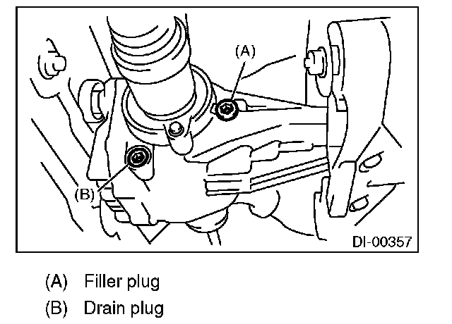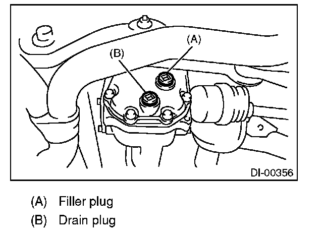 ^ Be careful not to spill the differential gear oil on exhaust pipe. If gear oil is spilled, wipe it off completely.