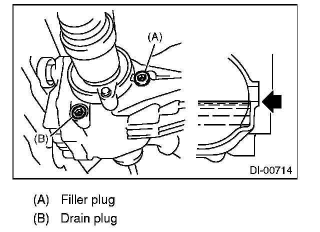 4) Fill the differential carrier with gear oil to the bottom of filler plug.