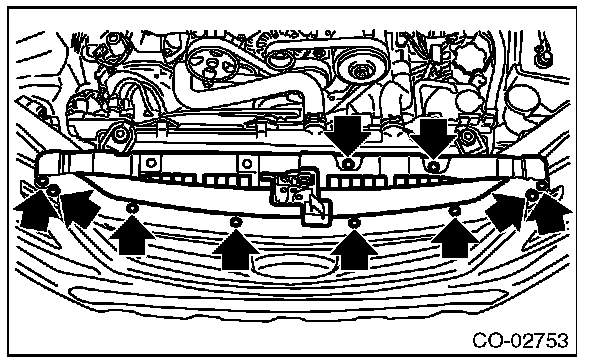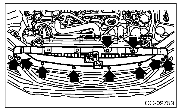 Remove ten clips when removing the grille bracket.