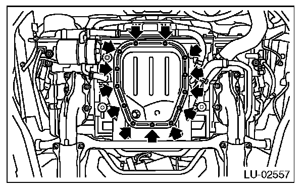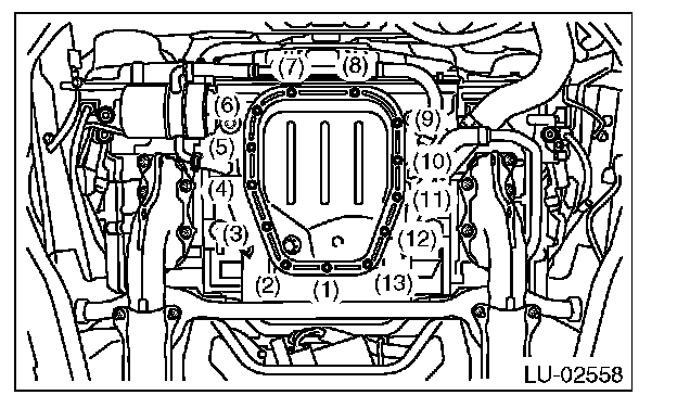 2) Tighten the oil pan lower installing bolts in the numerical order as shown in the figure.