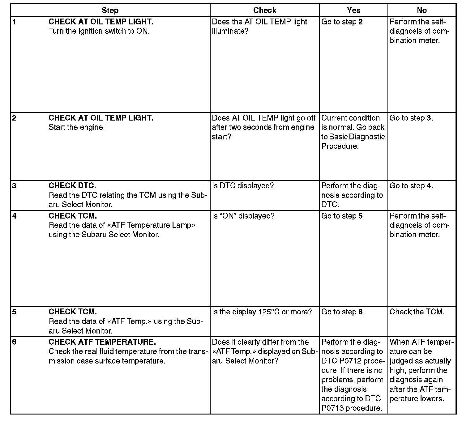AT OIL TEMP light illuminates when the ATF temperature is abnormally high with engine ON.