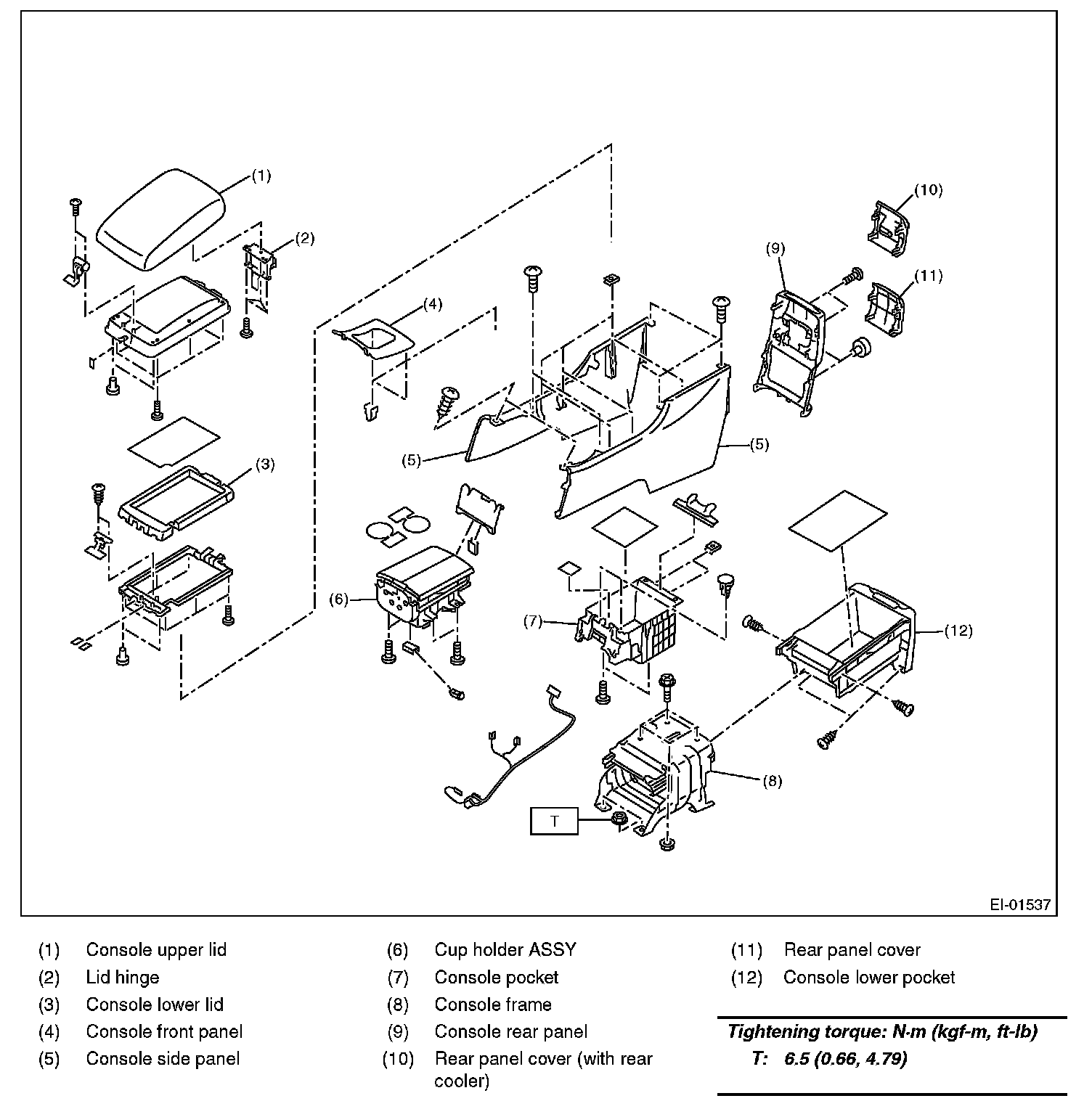 4. Pull out the console lower pocket, and remove the console box.