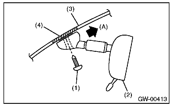 2. Slide the rearview mirror (2) to the upper side (A) of windshield glass (3), and remove the mirror from mount (4).