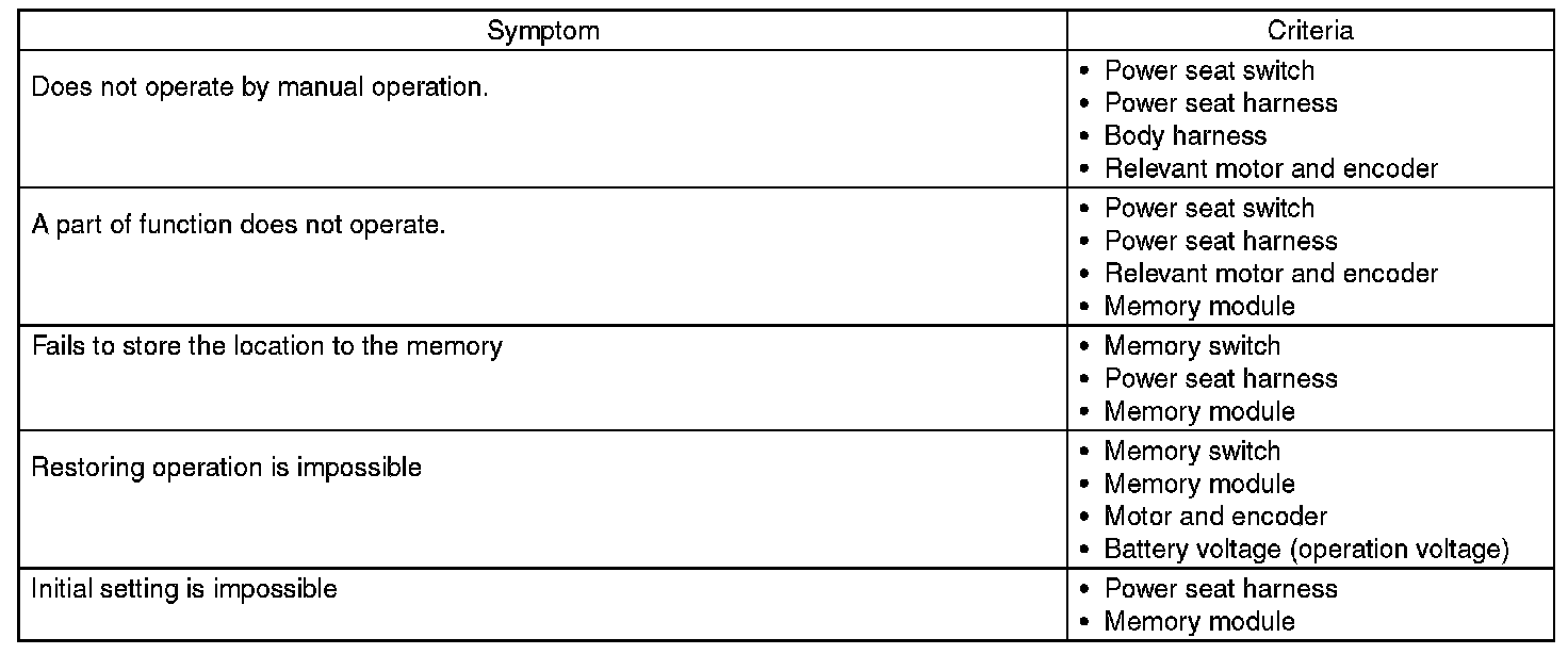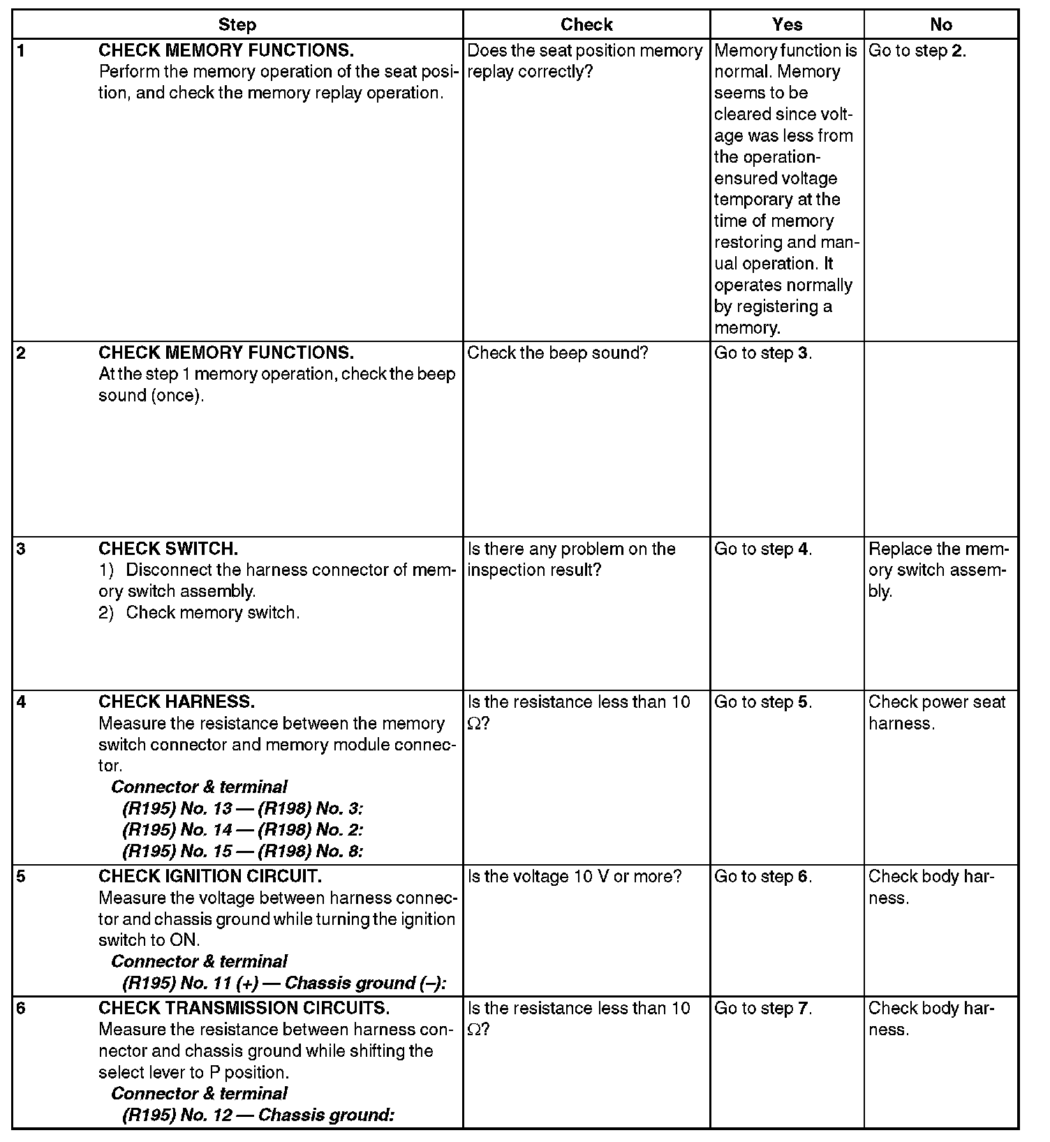9. FAILS TO STORE THE LOCATION TO THE MEMORY (DRIVER'S SEAT, WITH MEMORY)