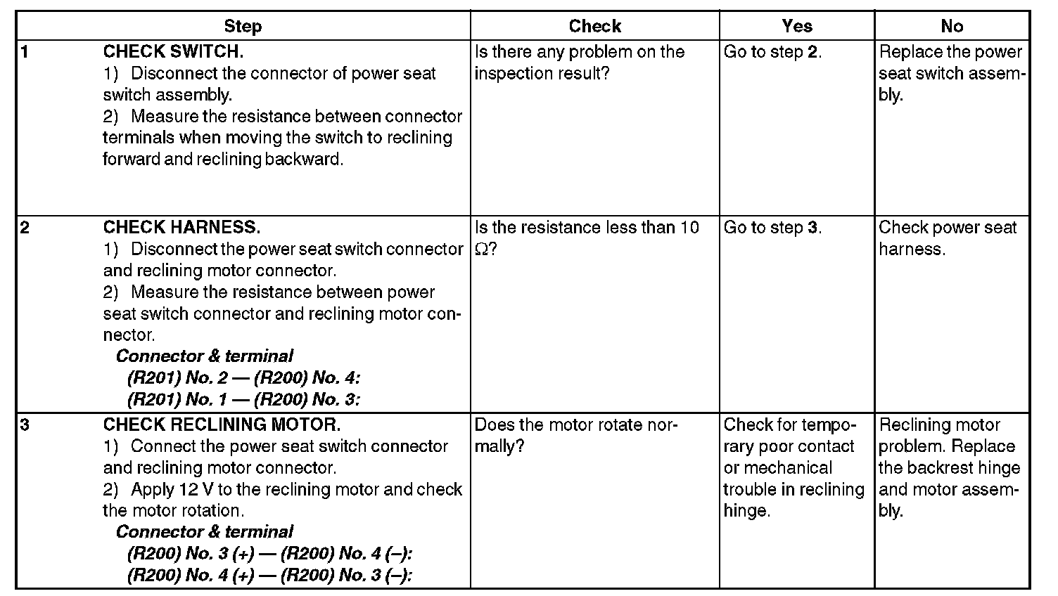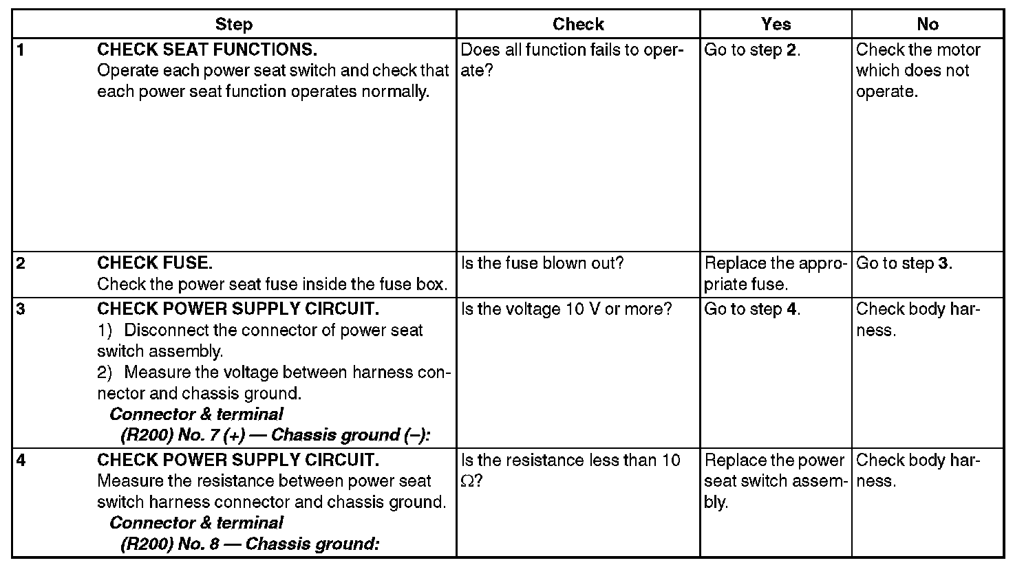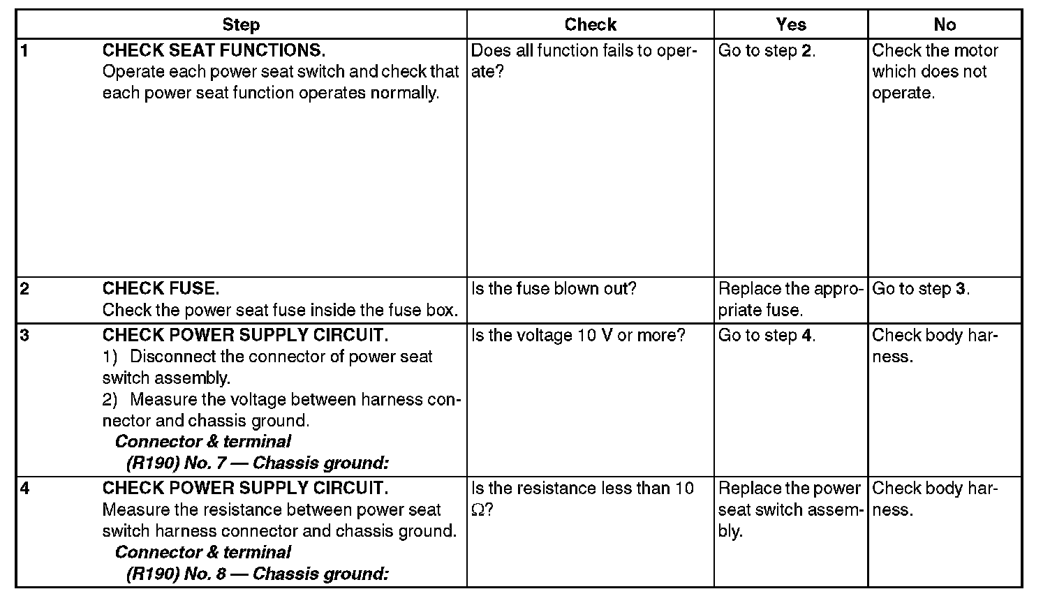 6. SOME OF THE MOTORS DO NOT OPERATE (DRIVER'S SEAT, WITHOUT MEMORY)