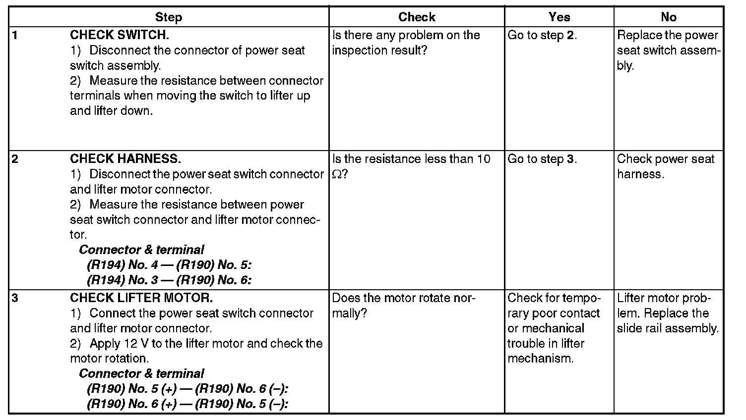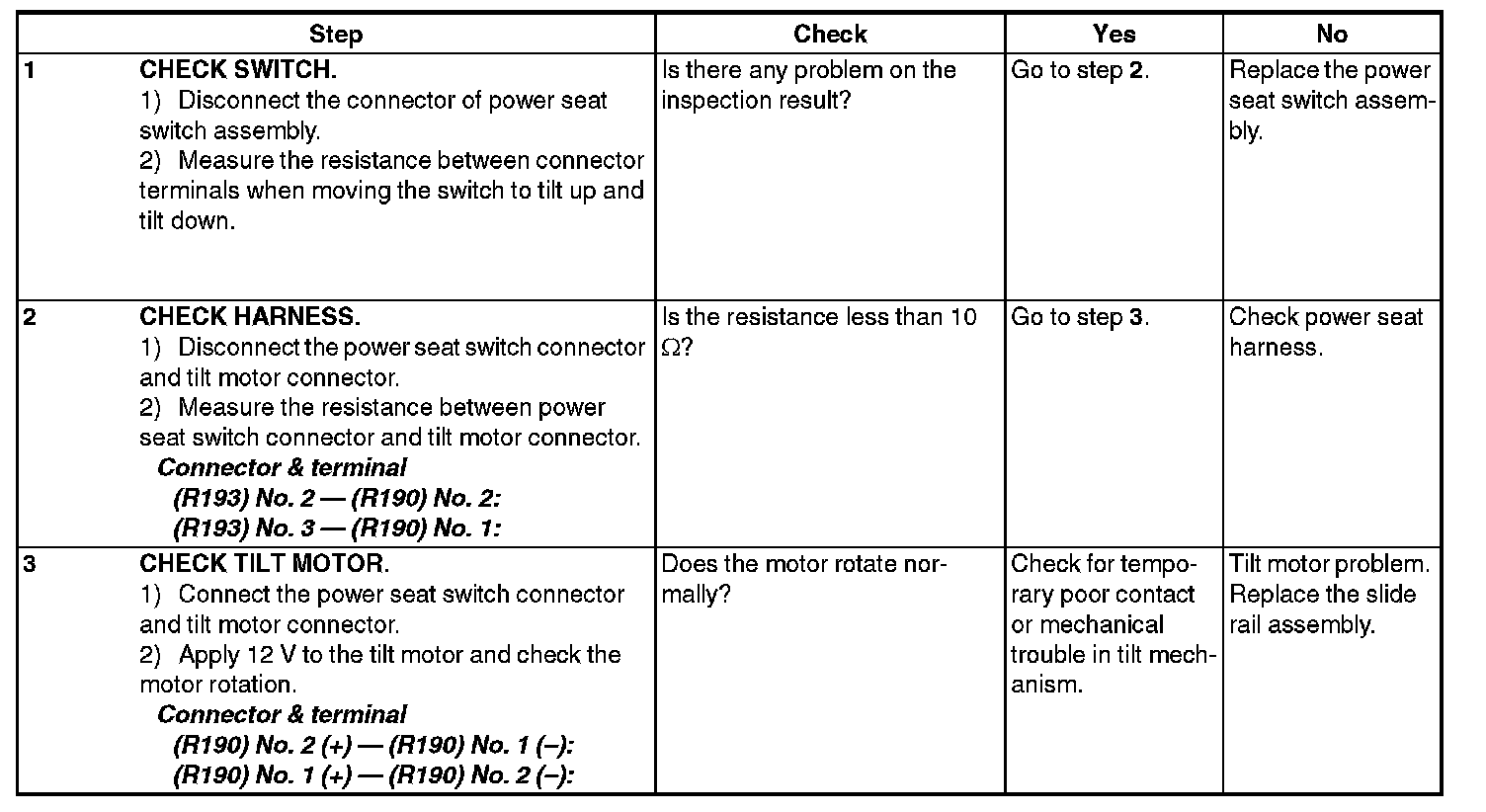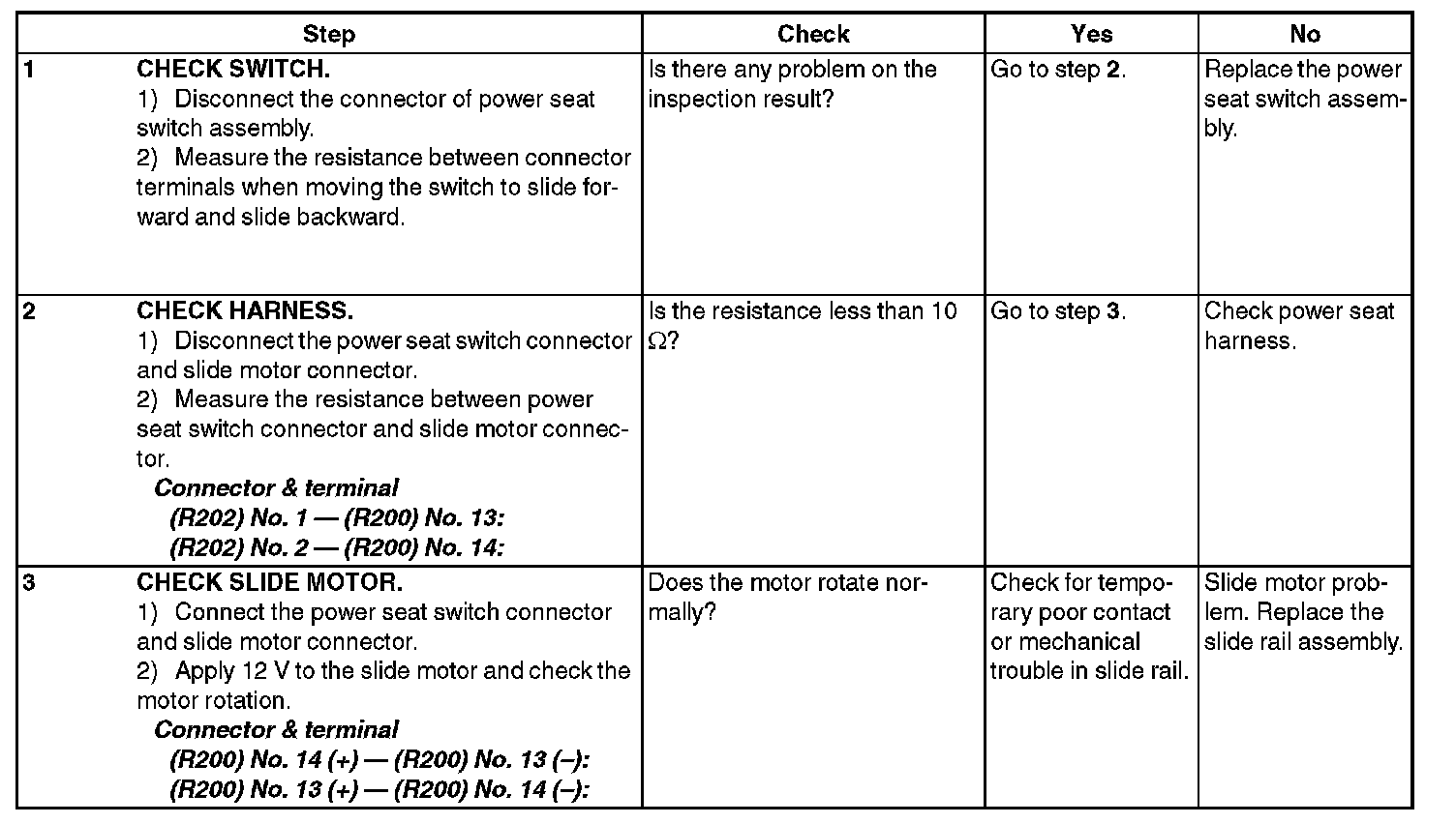 6. SOME OF THE MOTORS DO NOT OPERATE (DRIVER'S SEAT, WITHOUT MEMORY)