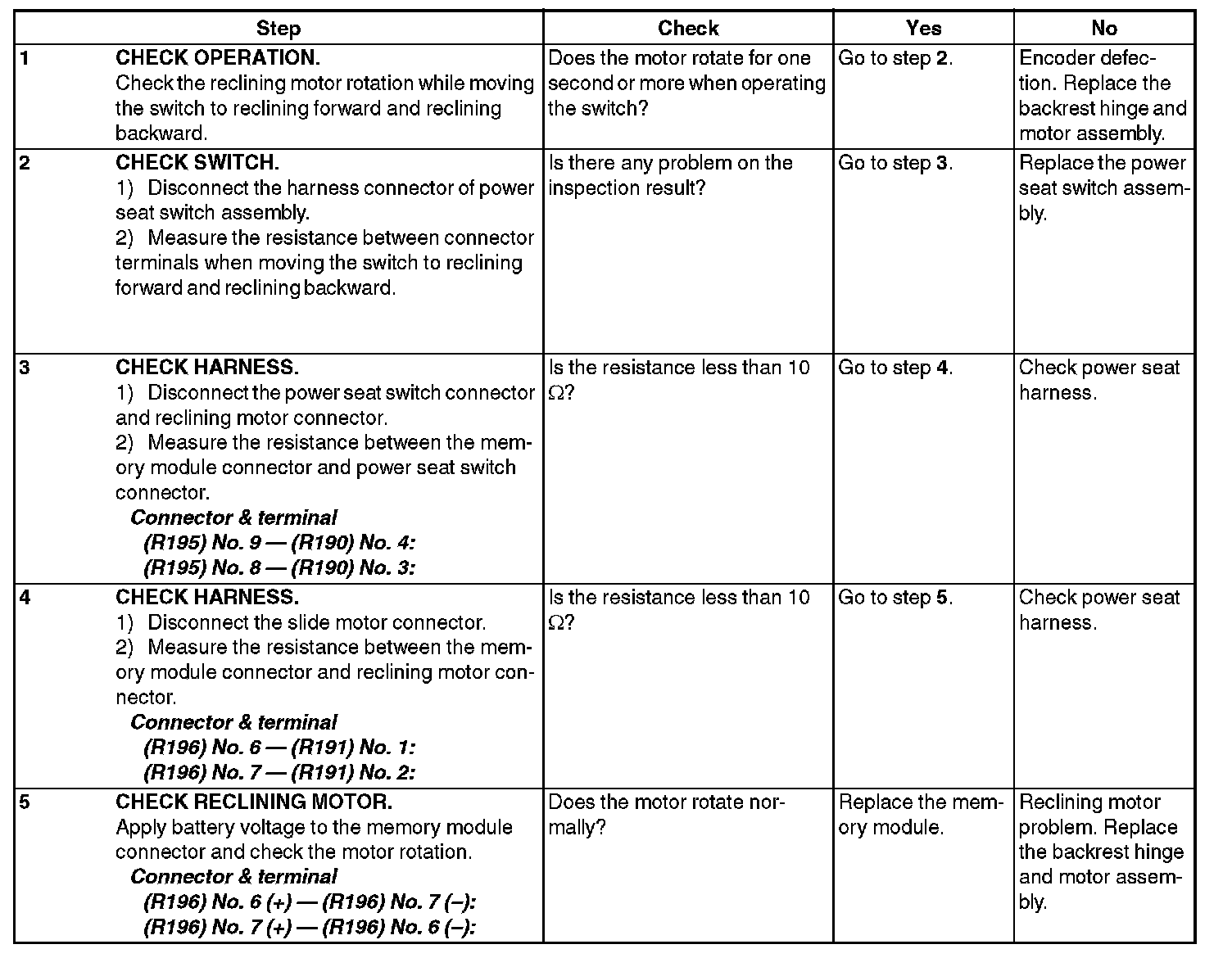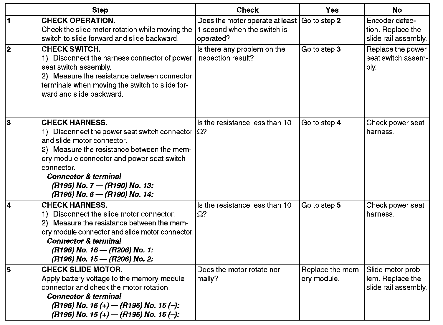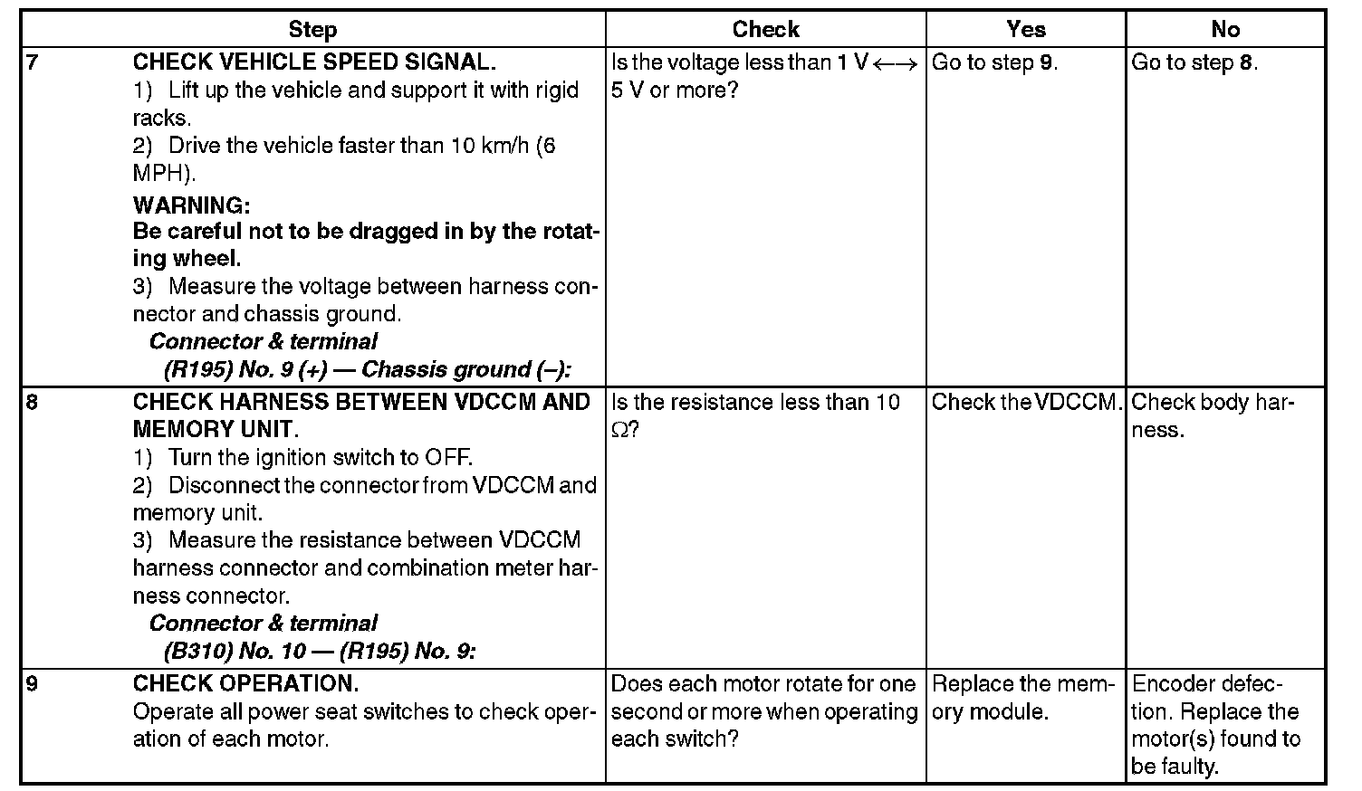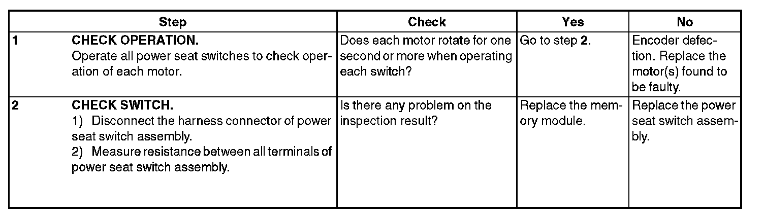7. DOES NOT OPERATE IN MANUAL OPERATION (DRIVER'S SEAT, WITH MEMORY)