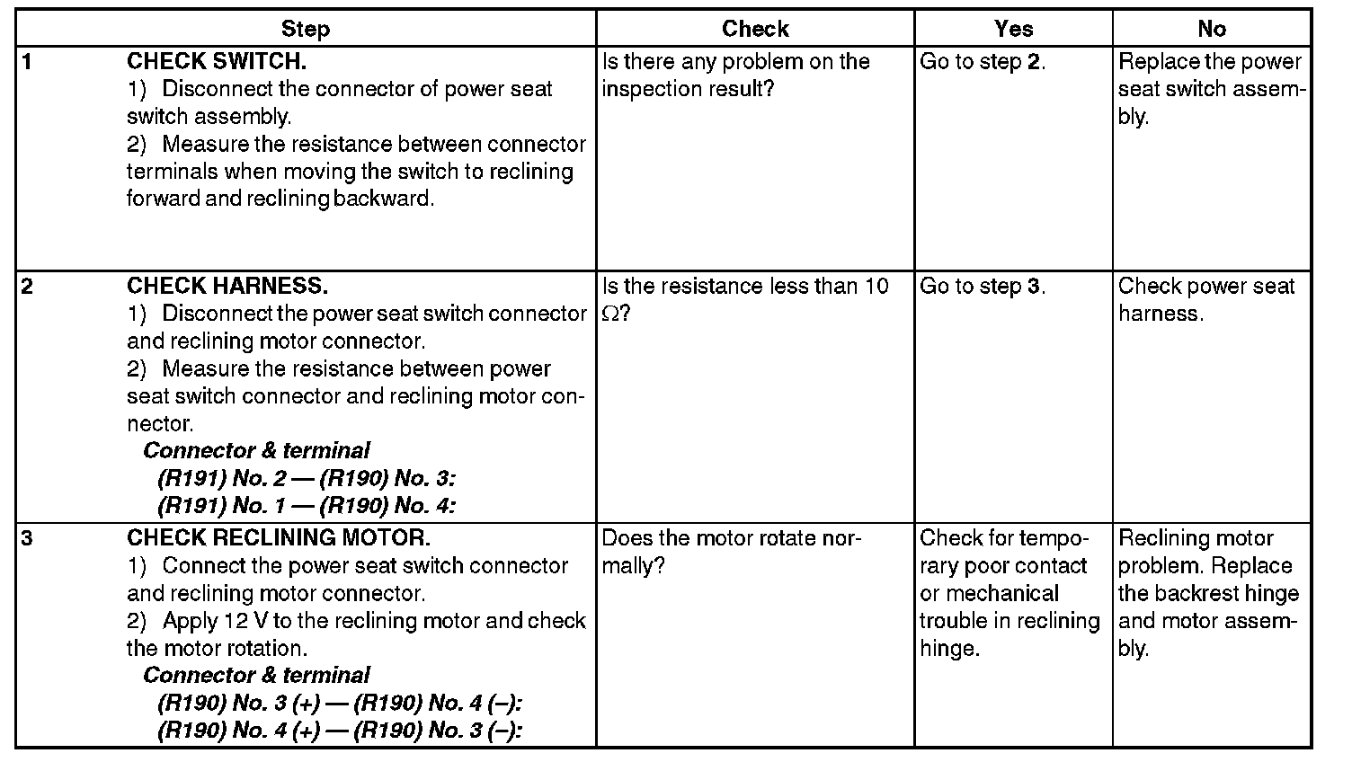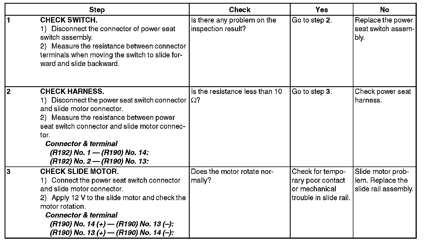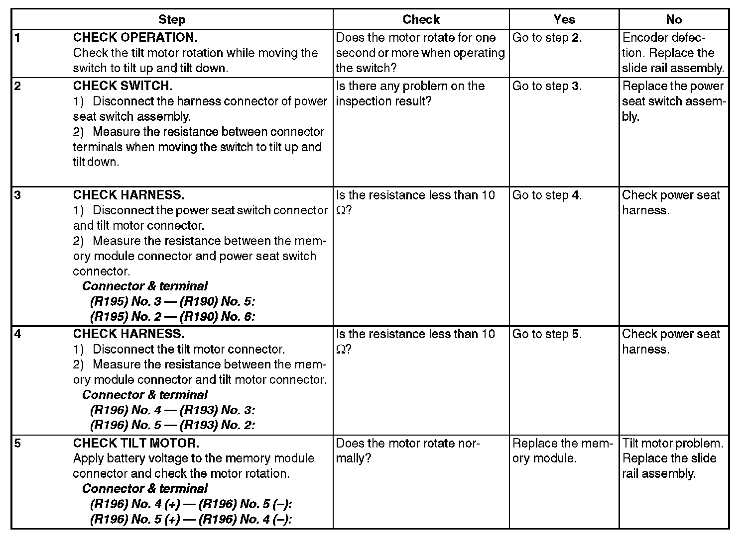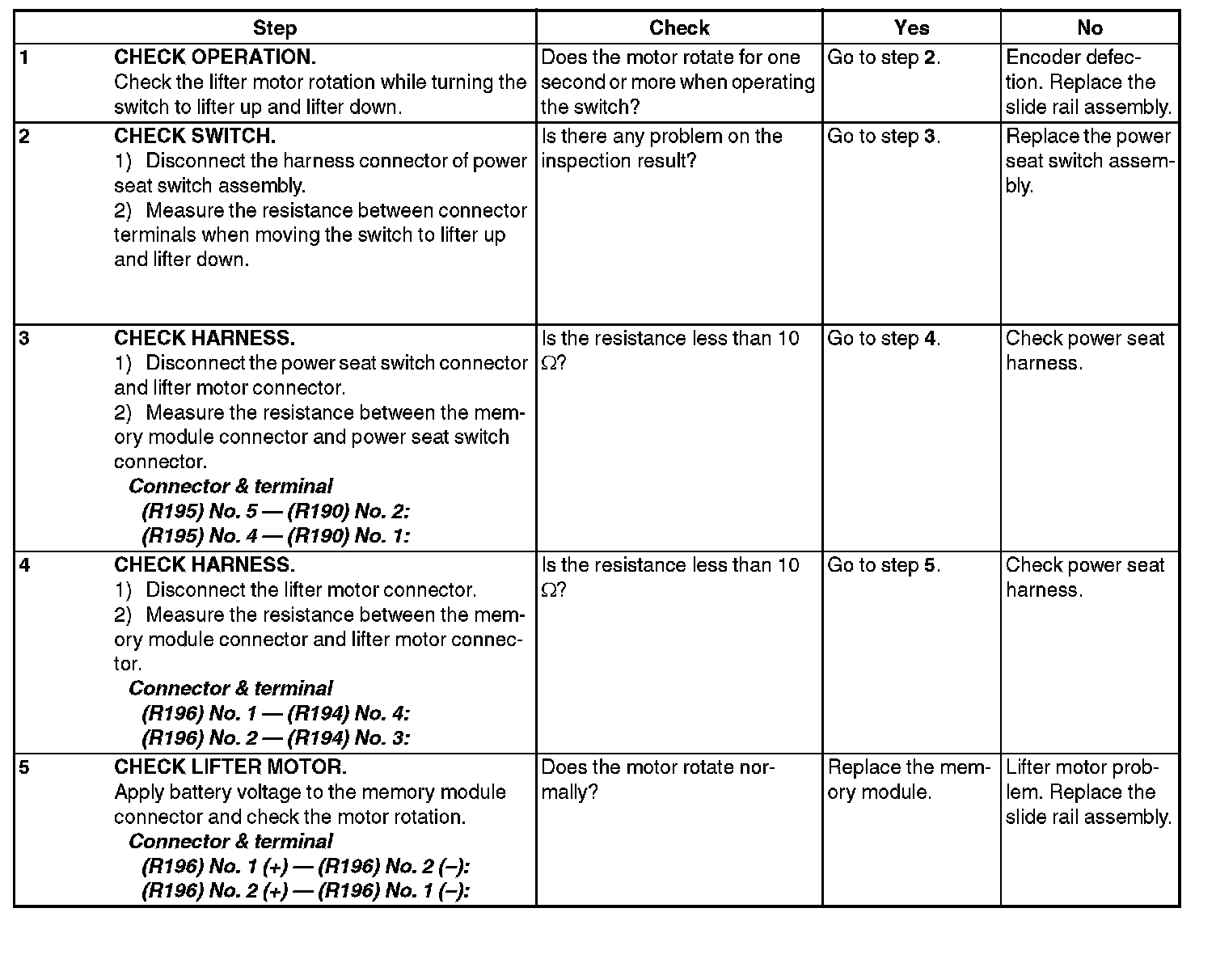 7. DOES NOT OPERATE IN MANUAL OPERATION (DRIVER'S SEAT, WITH MEMORY)