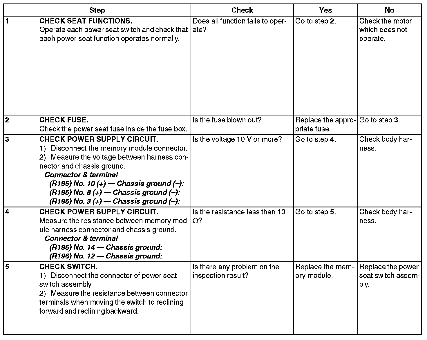 5. ALL FUNCTION FAILS TO OPERATE (DRIVER'S SEAT, WITHOUT MEMORY)