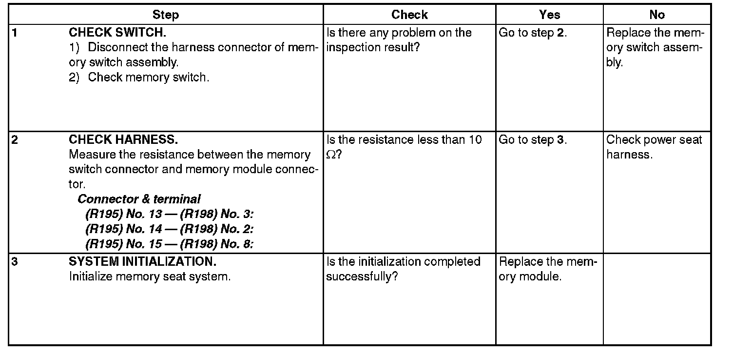 10. FAILS TO PERFORM THE REPLAY OPERATION (DRIVER'S SEAT, WITH MEMORY)