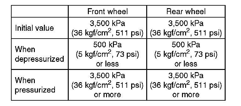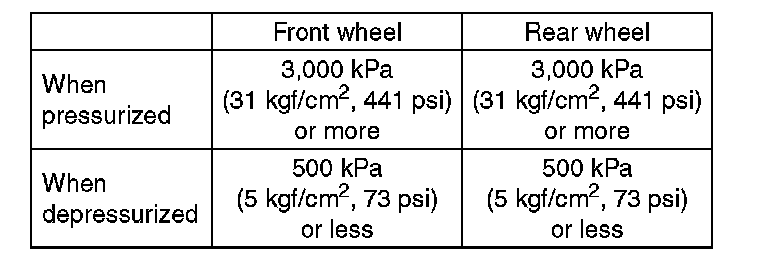 7) Read values indicated on the pressure gauge and check if the fluctuation of the values between decompression and compression meets specification. Depress the brake pedal and check that it is not abnormally hard, and tightness is normal.