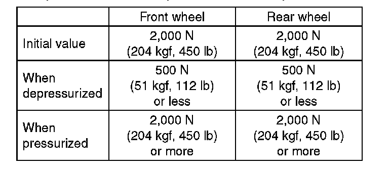 7) Read values indicated on the brake tester and check if the fluctuation of the values between decompression and compression meets specification.