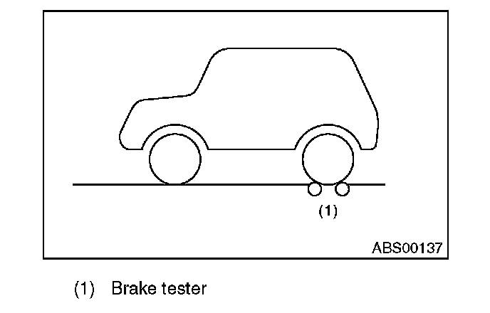 3) Set the front wheels or rear wheels on the brake tester and set the select lever position to the "N" range.