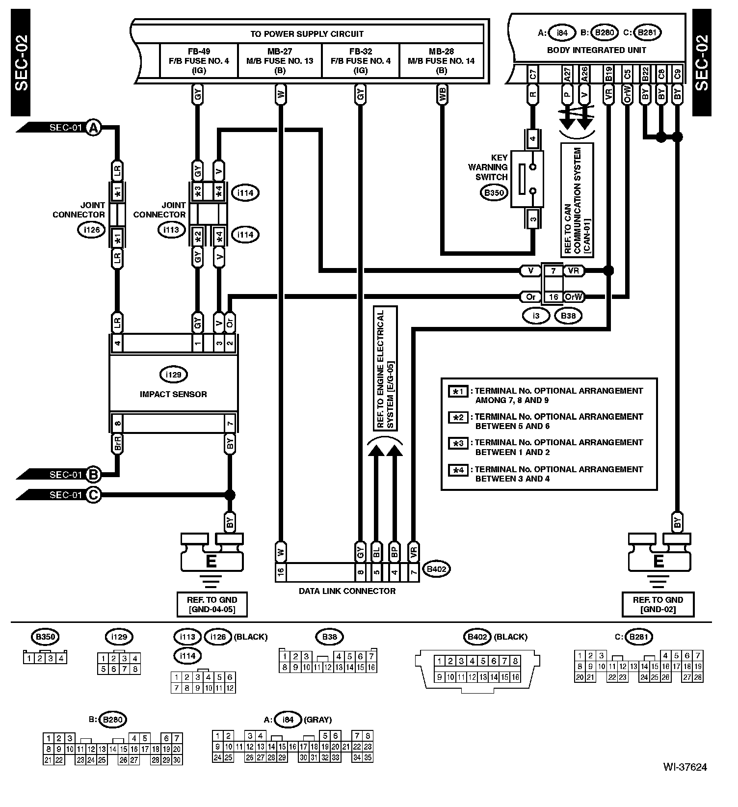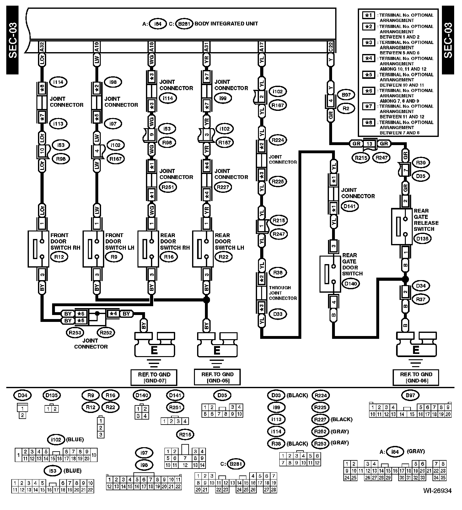 The locations of the Connectors or Grounds shown within these diagrams can be found via the connector or ground number at Vehicle Locations.