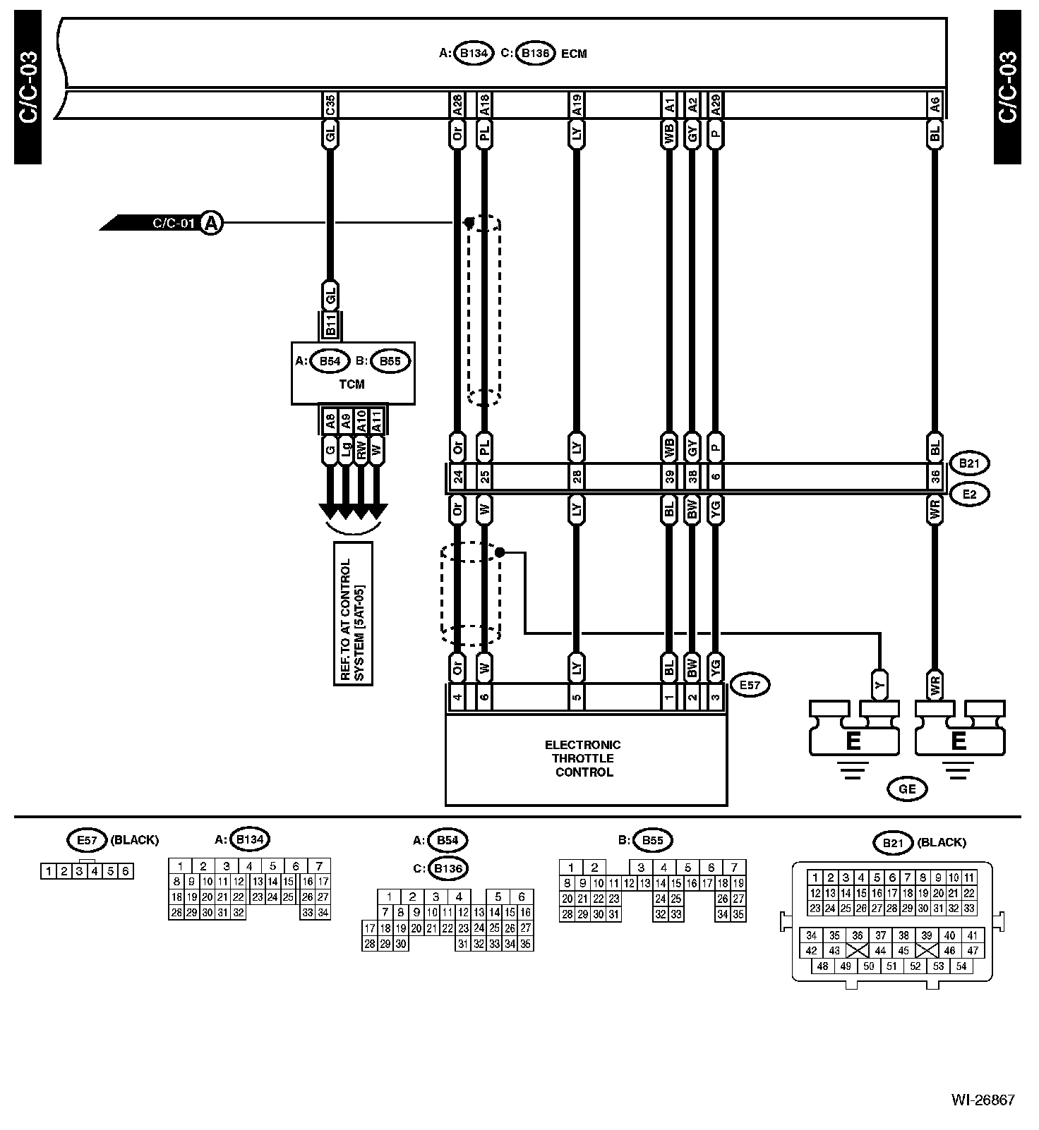 The locations of the Connectors or Grounds shown within these diagrams can be found via the connector or ground number at Vehicle Locations.