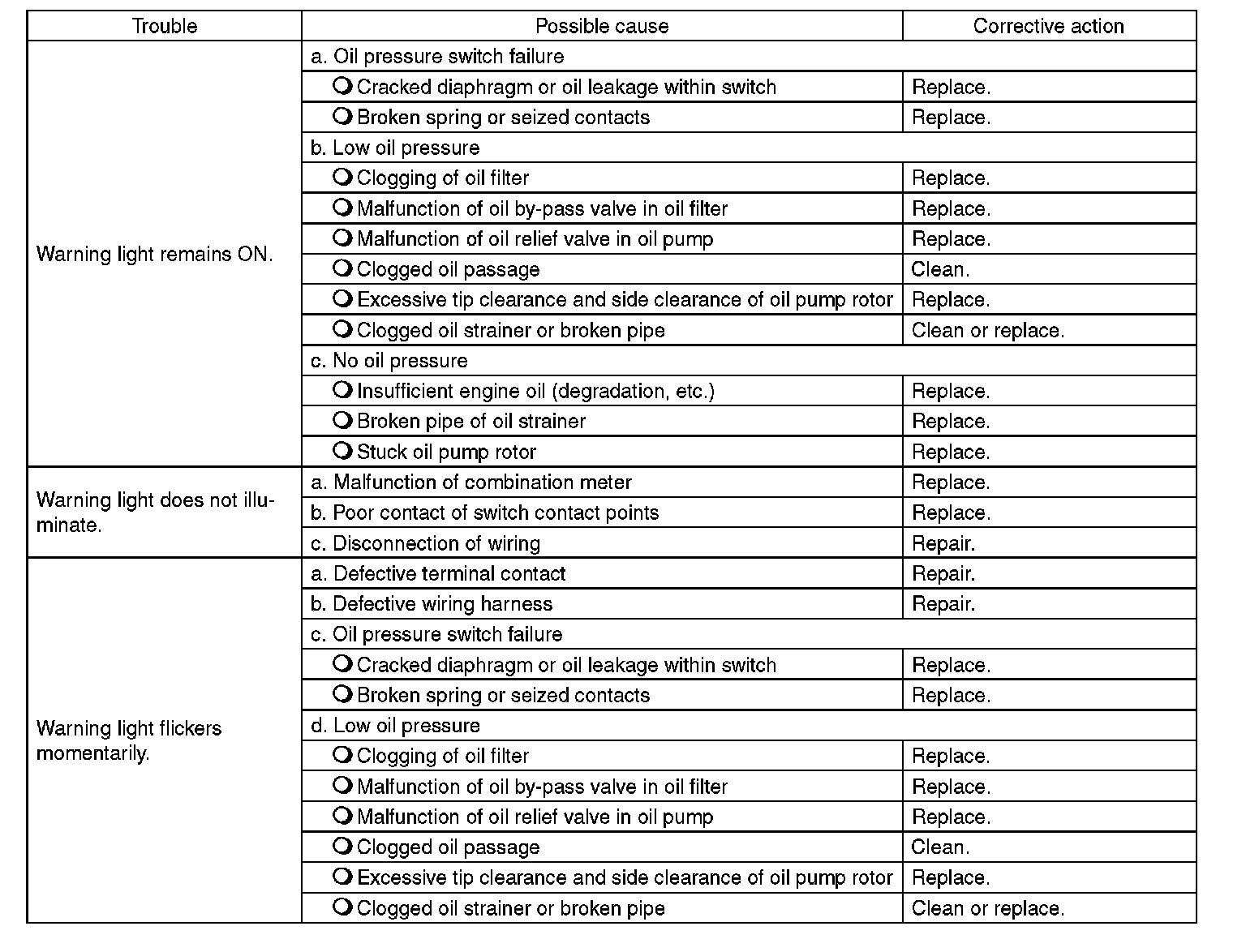 General Diagnostic Table
