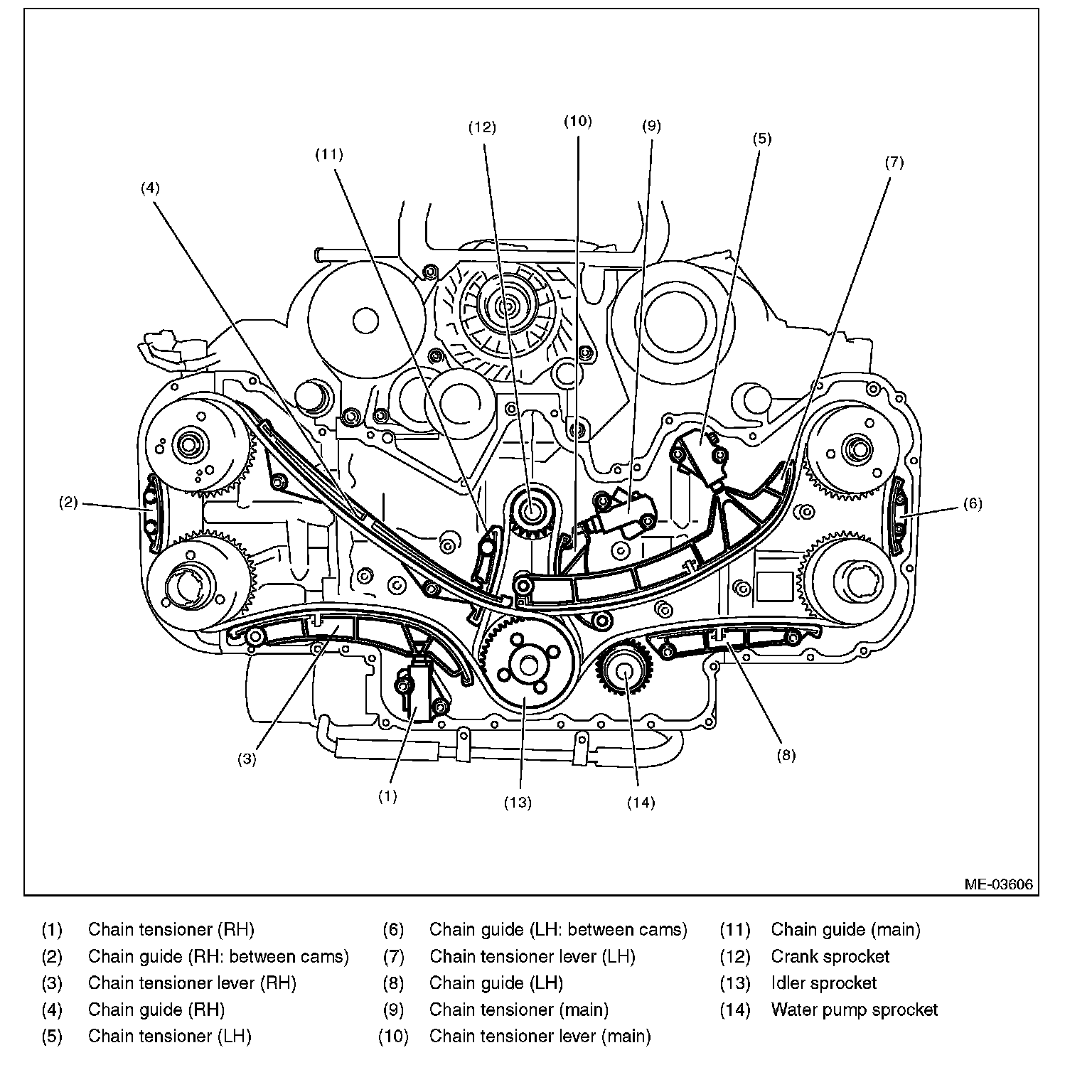 14) Remove the chain guide (LH).