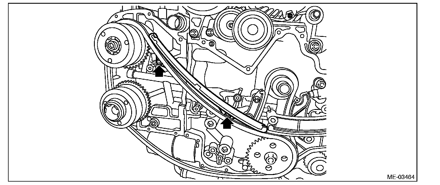 (1) Make sure that the timing mark of idler sprocket is aligned to three timing chain marks (gold).