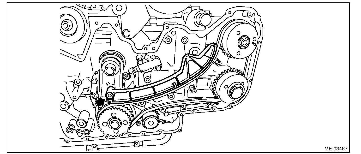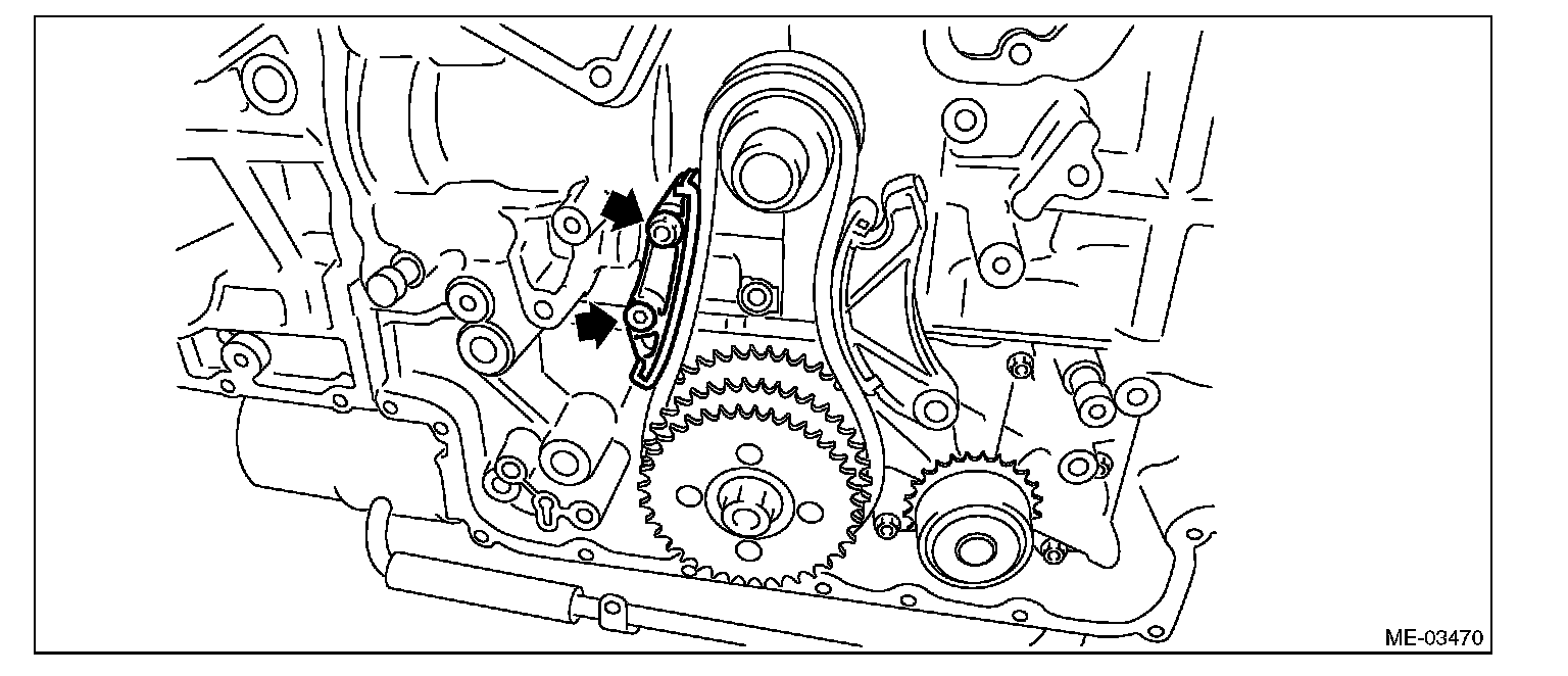 12) Remove the chain guide (LH: between cams).