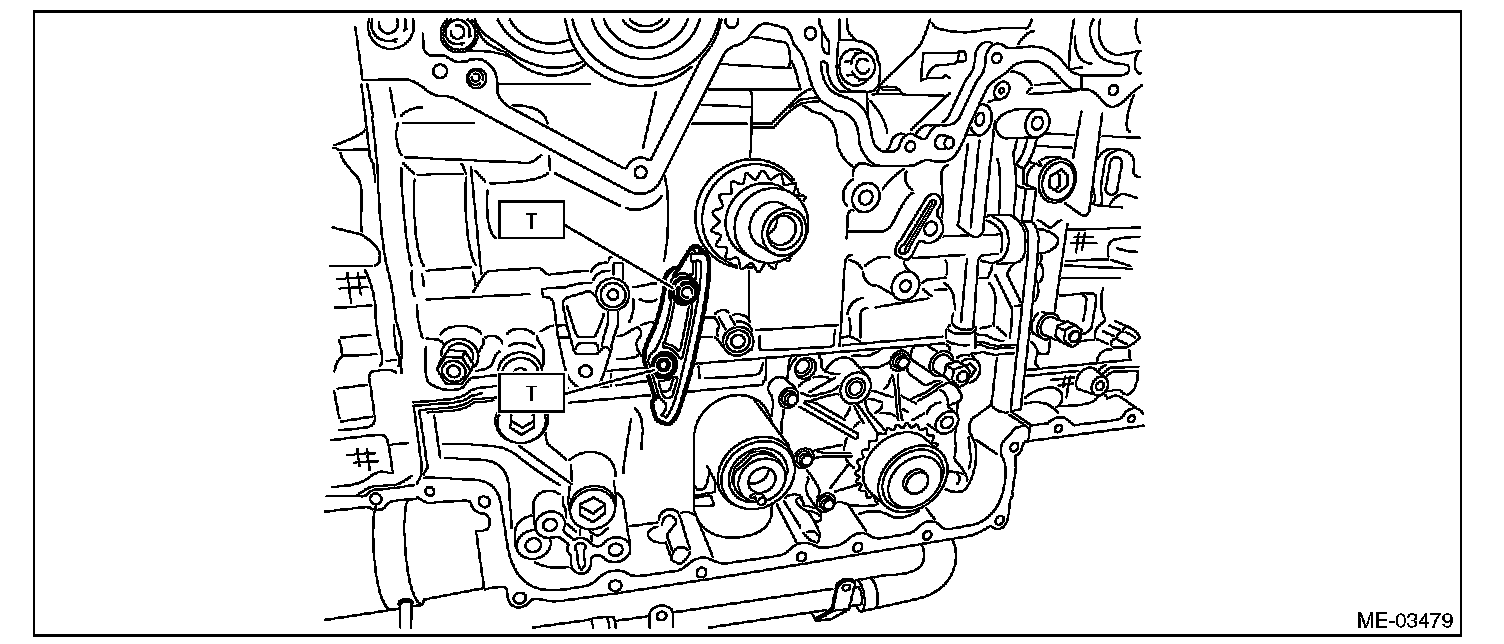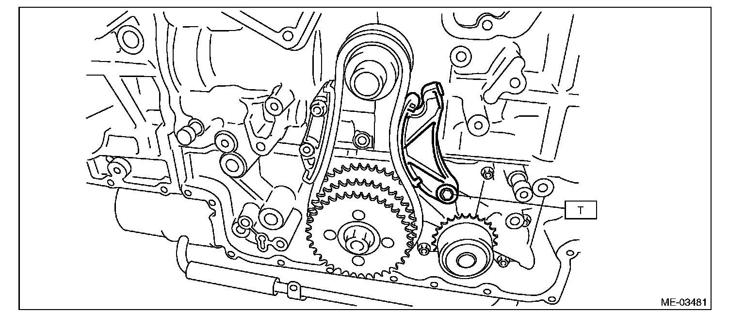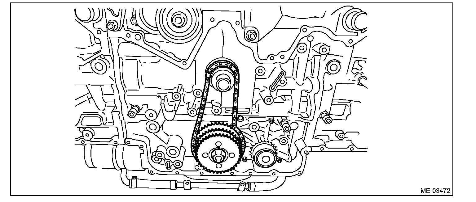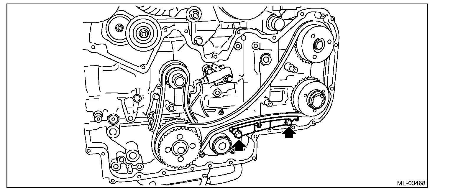 20) Remove the idler sprocket, and then remove the idler sprocket and timing chain (main).