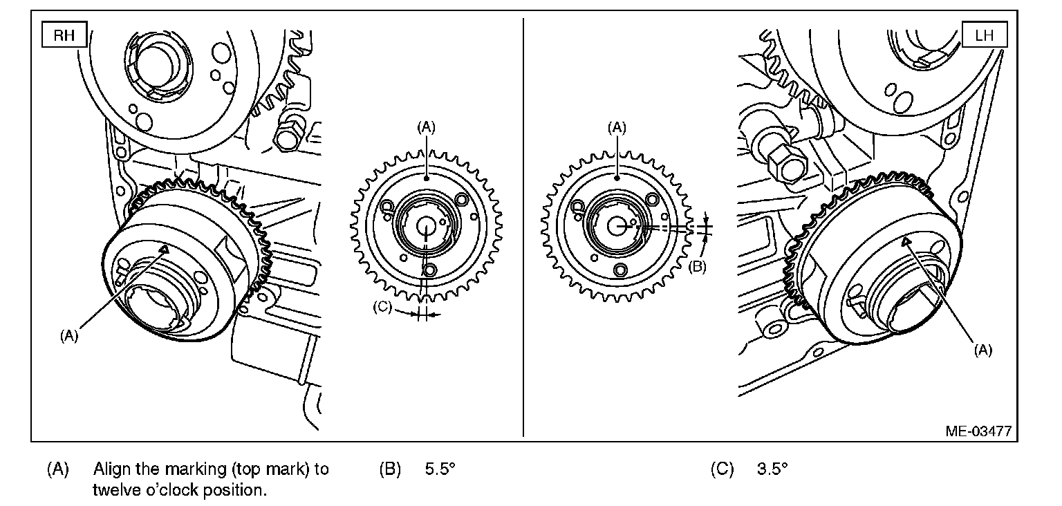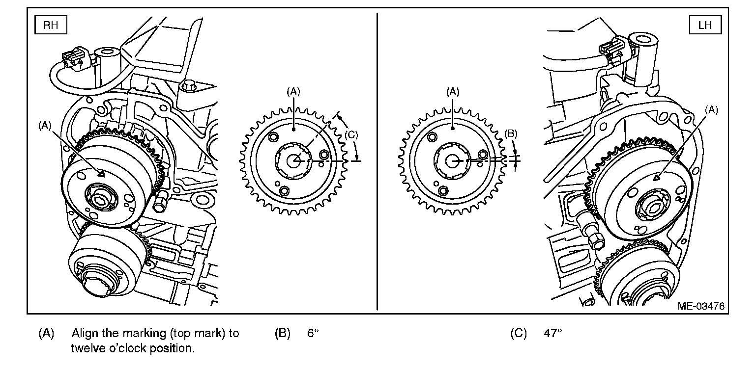 4) Align the intake cam sprocket to twelve o'clock position as shown in the figure.