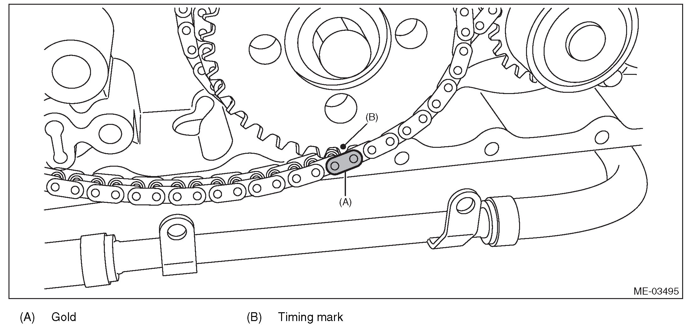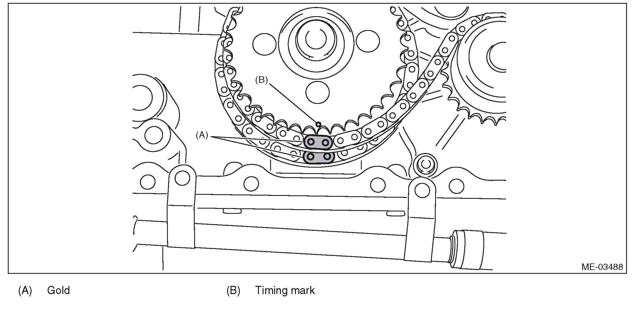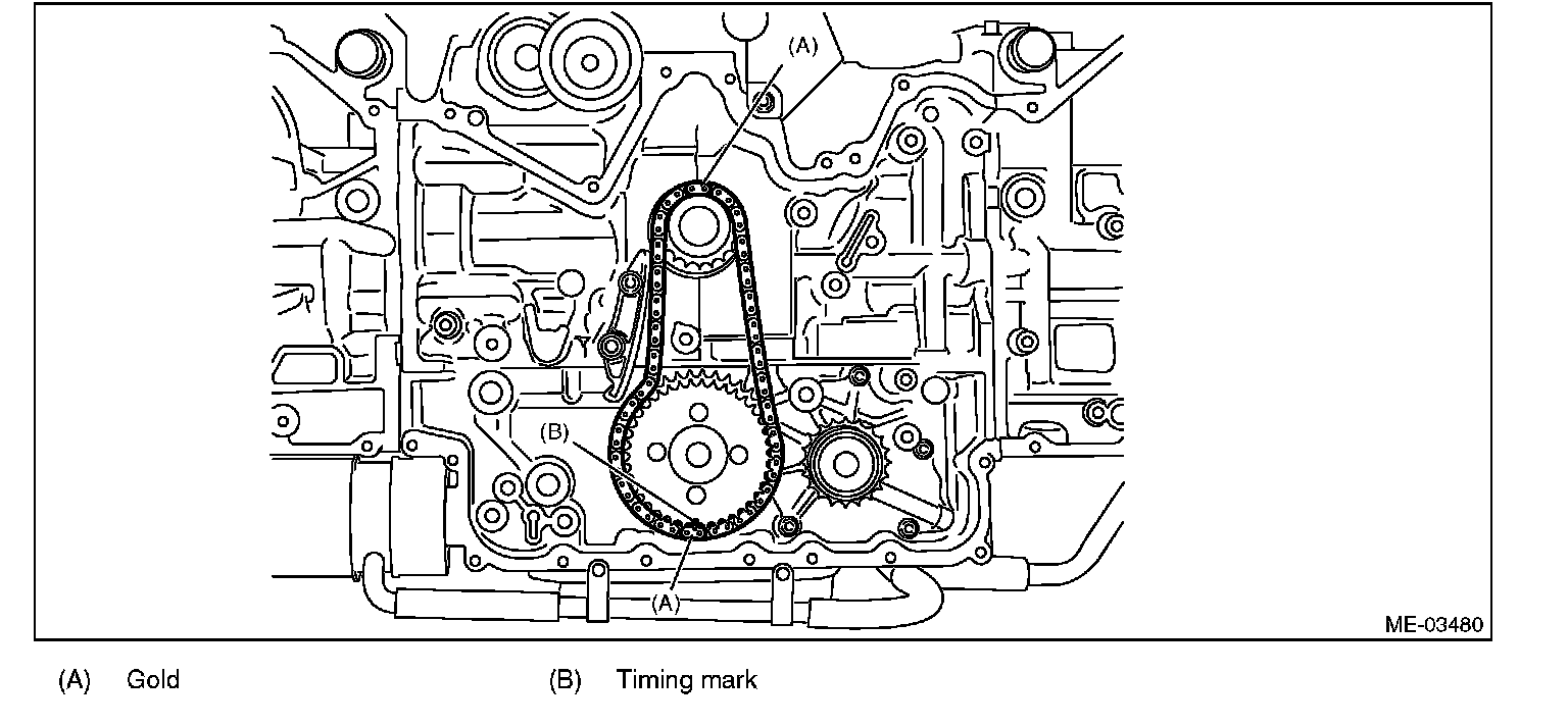 (1) Match the timing chain mark (gold) to the timing mark position of the idler sprocket.