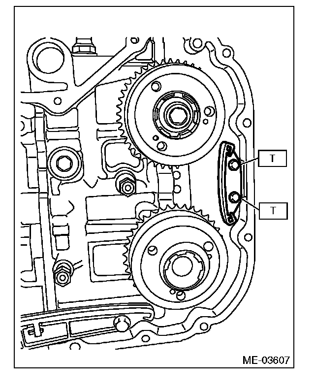14) Install the chain tensioner lever (LH).