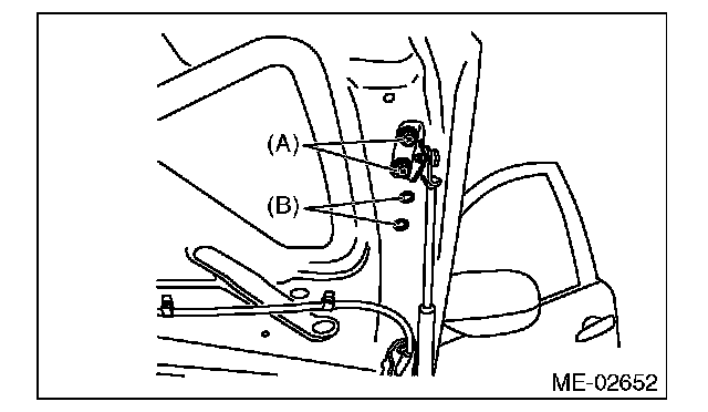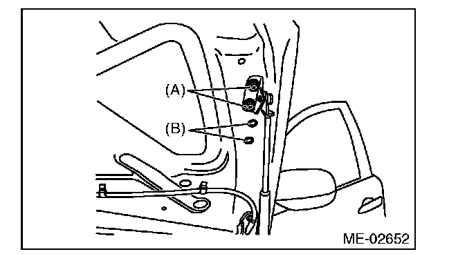 6) Change the bolt mounting position from (A) to (B), then completely open the front hood.