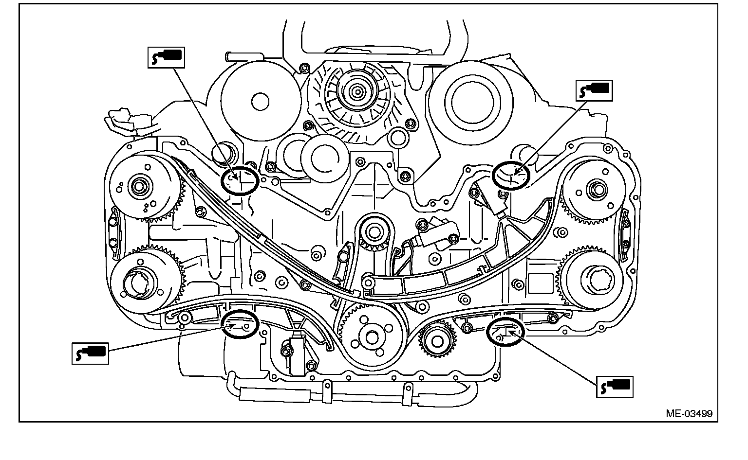 15) Make sure there is no oil leaks in the chain cover mating surface.