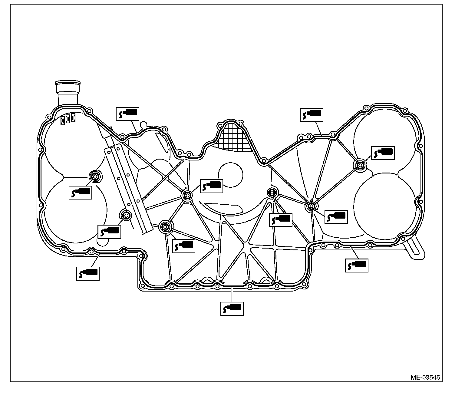 Install within 5 min. after applying liquid gasket.