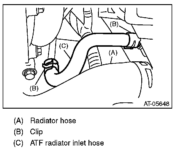 Make sure there are no ATF leaks in joints between the transmission, radiator, ATF pipes, and ATF hoses.