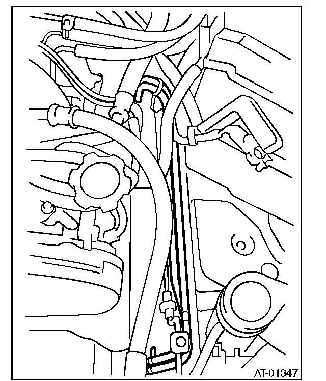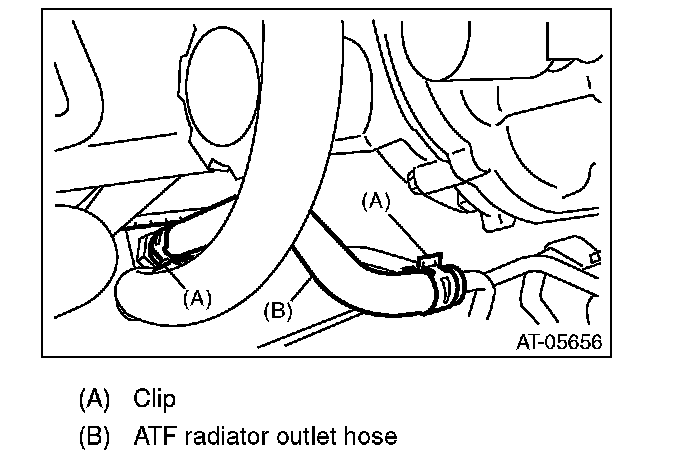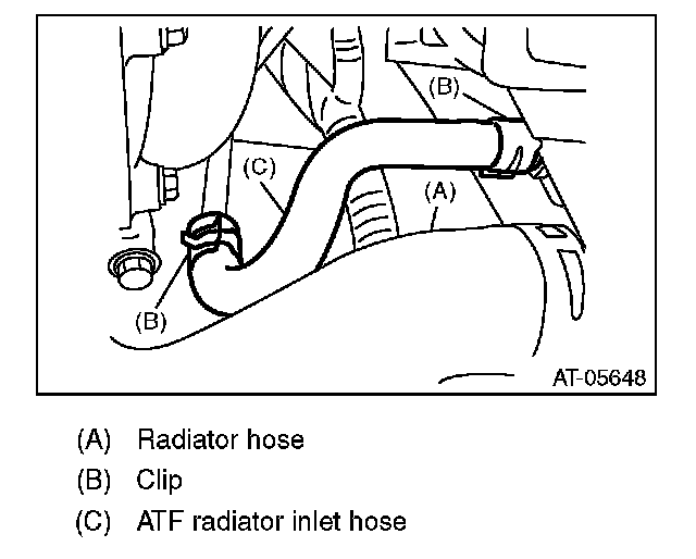5) Remove the ATF AT inlet and outlet hoses from the ATF AT inlet and outlet pipes.