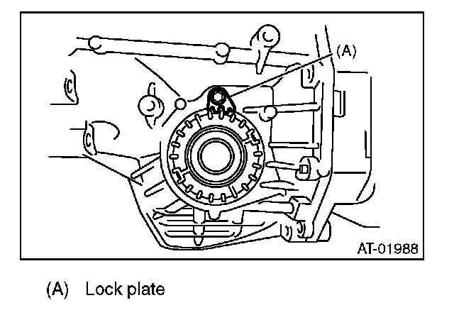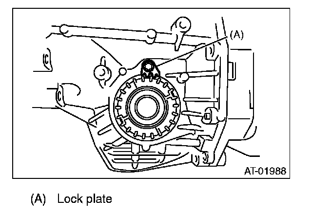 7) After the "zero" state is established, loosen the retainer LH by 3 notches and secure it with the lock plate. Then loosen the retainer RH and retighten until it stops. Rotate the drive pinion 2 or 3 times. Tighten the retainer RH further 1-3/4 notches. This sets the preload. Finally, secure the retainer with its lock plate.