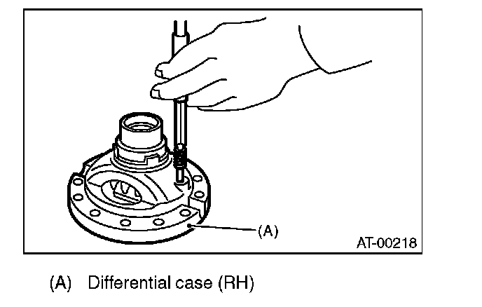 Hold the differential case assembly by hand to avoid damaging the differential side retainer mounting hole of the converter case.