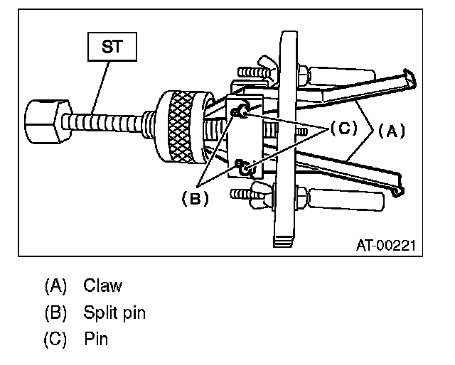 1) Remove the taper roller bearing using the ST and the press.