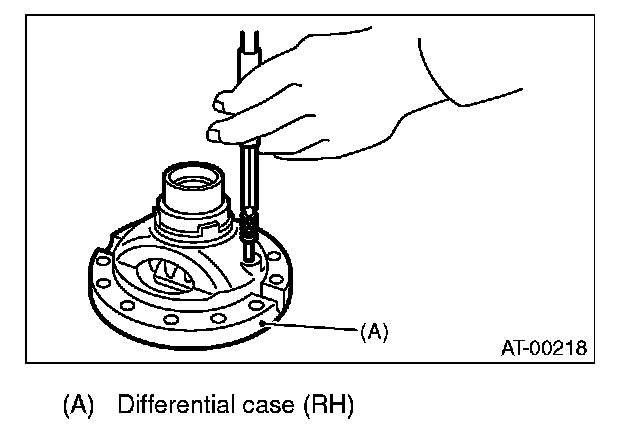 1) Install the washer, differential bevel gear and differential bevel pinion in the differential case (RH). Insert the pinion shaft.