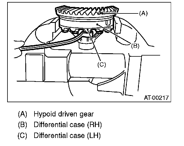 1) When installing the front differential assembly to the case, be careful not to damage the inside of case (particularly, the differential side retainer mating surface).