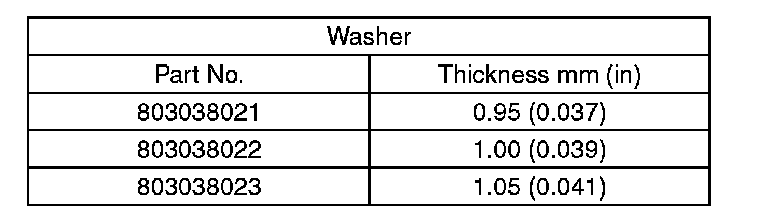 (3) If the backlash is not within specification, select a washer from the table below.