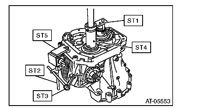 9) Turn the drive pinion a few times with ST1 and check to see if the backlash is within the specified value, using ST2, ST3, ST4 and ST5.